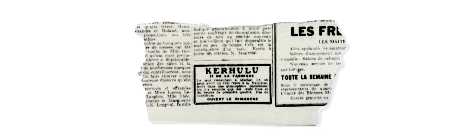 Le français Joseph Kerhulu vient d’ouvrir sa pâtisserie-restaurant au 22, côte de la Fabrique. L’endroit devient vite le lieu de rendez-vous des intellos et des amoureux de gastronomie française. Pour le voyageur du temps, le taux de change se révèle très avantageux. Sur le menu, le homard thermidor est indiqué à 0,90$ [16,16$ en argent de 2025]. La bouteille de bourgogne Nuits-Saint-Georges 1915 est à 2,50$… [44,89$ en argent de 2025].