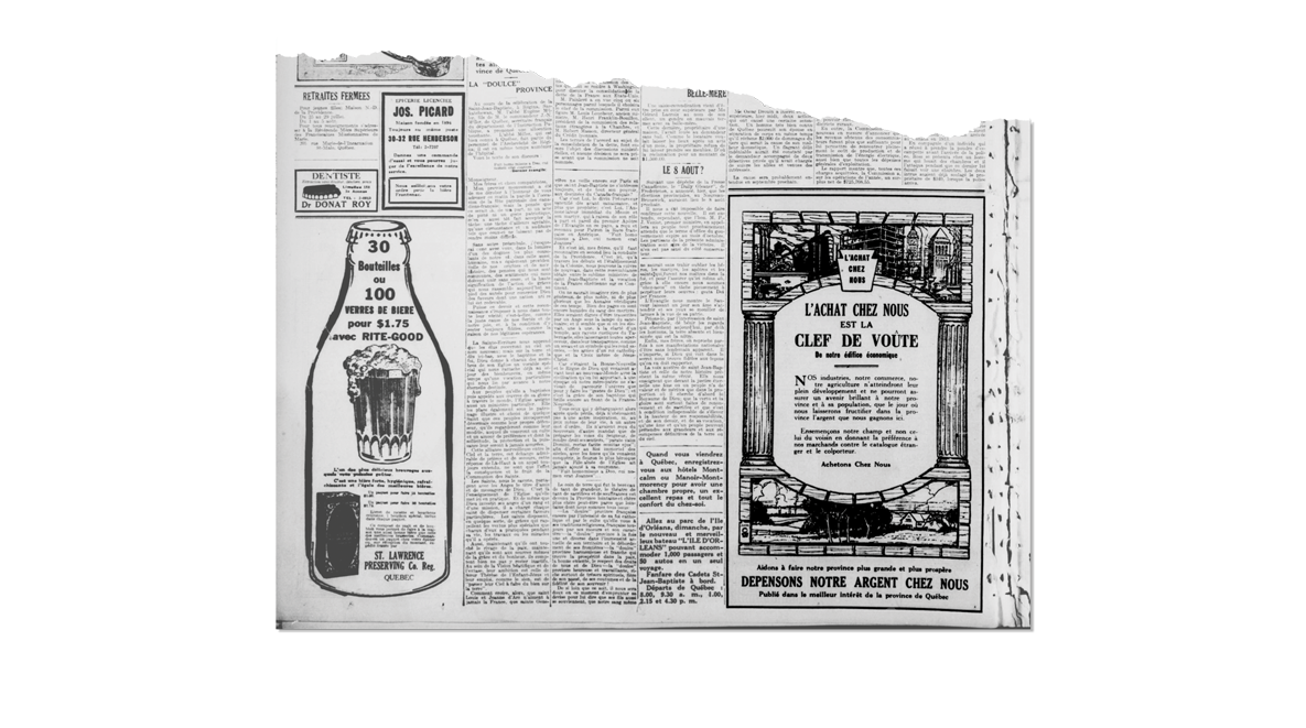 Publicité «L’achat chez nous constitue la clé de voûte de notre édifice économique», dans Le Soleil du 18 juillet 1925. (BANQ)