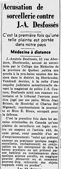 L’affaire Desfossés fait grand bruit en 1939. Il faut dire que les accusations de sorcellerie sont exceptionnelles au XXe siècle. (photo Journal Le Canada, 23 janvier 1939)