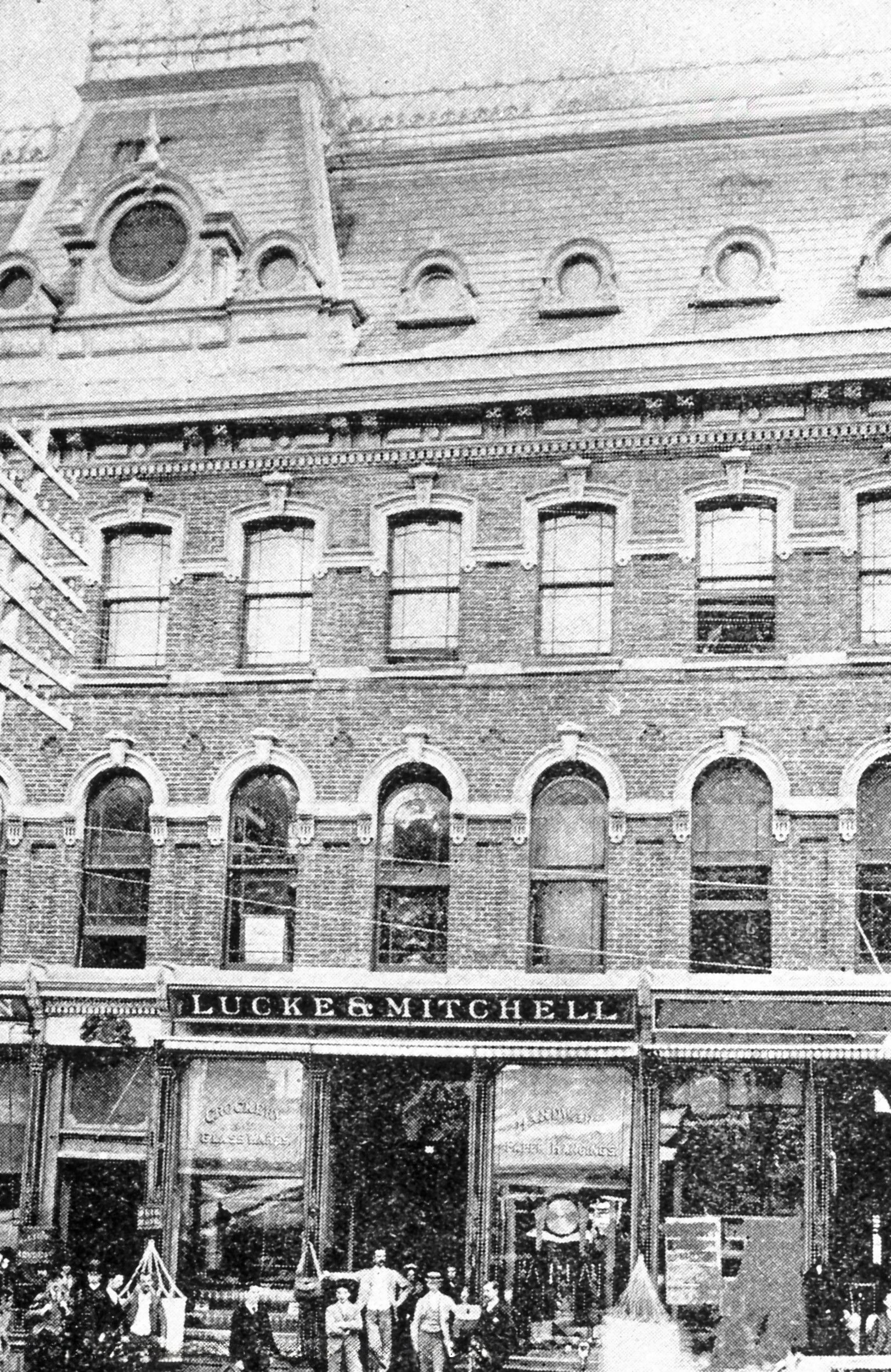Plusieurs commerces se succèdent dans l’édifice, mais l’un des plus connus est assurément la quincaillerie de Lucke & Mitchell. On dit quincaillerie, mais c’est digne d’un vrai magasin général typique de son époque. Le commerce offre une panoplie d’articles pratiques et ingénieux: on y trouve alors des fournaises en fonte sur pied, des pièces de ferronnerie et même des accessoires inattendus, comme des bâtons de golf, qui font le bonheur d’une clientèle avisée! À la fin des années 1910, la quincaillerie devenue simplement «J. S. Mitchell» déménage dans les locaux de l’édifice voisin, et ce, jusqu’aux années 1960.