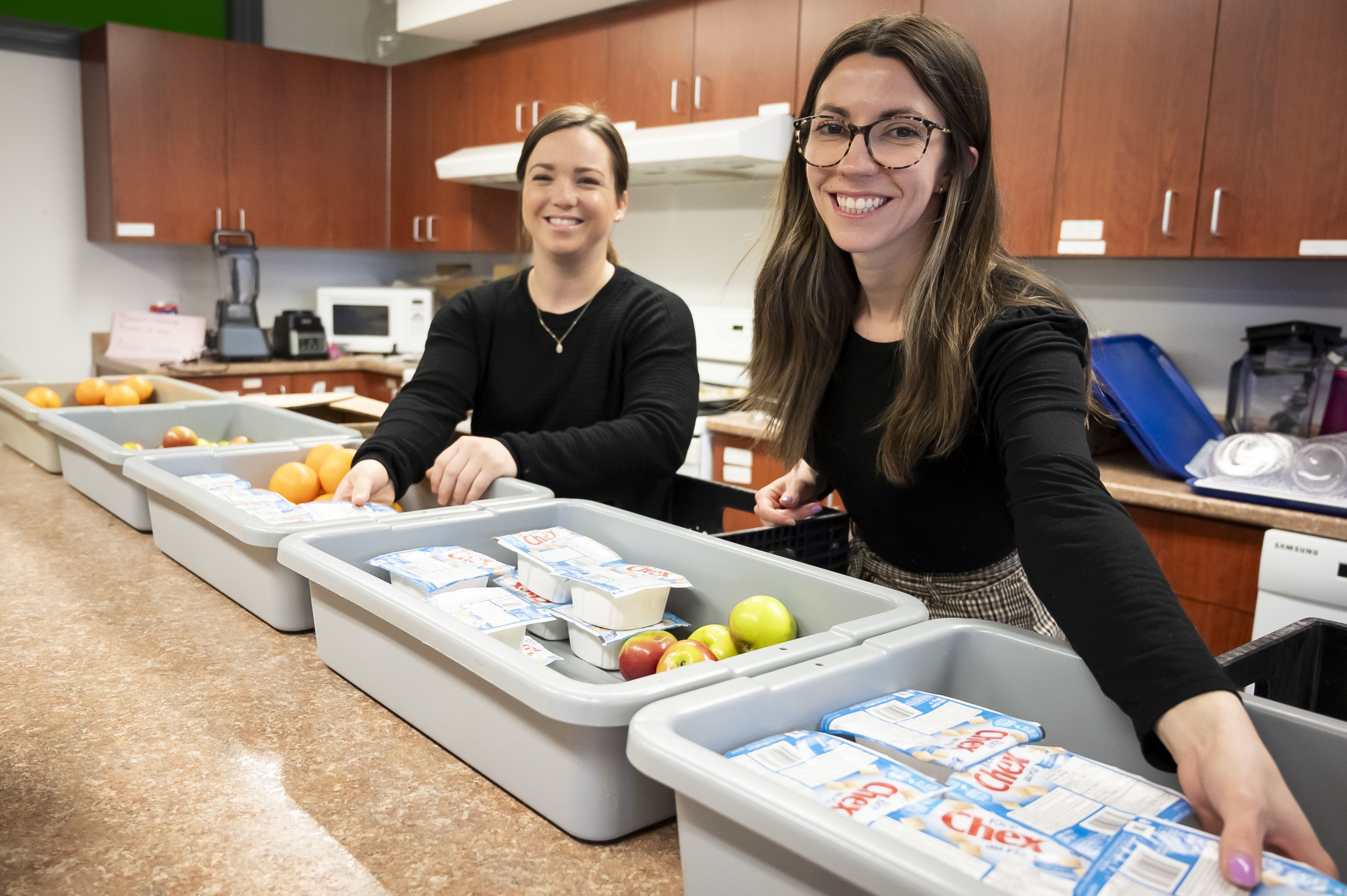 Deux enseignantes qui préparent des collations pour leurs élèves.