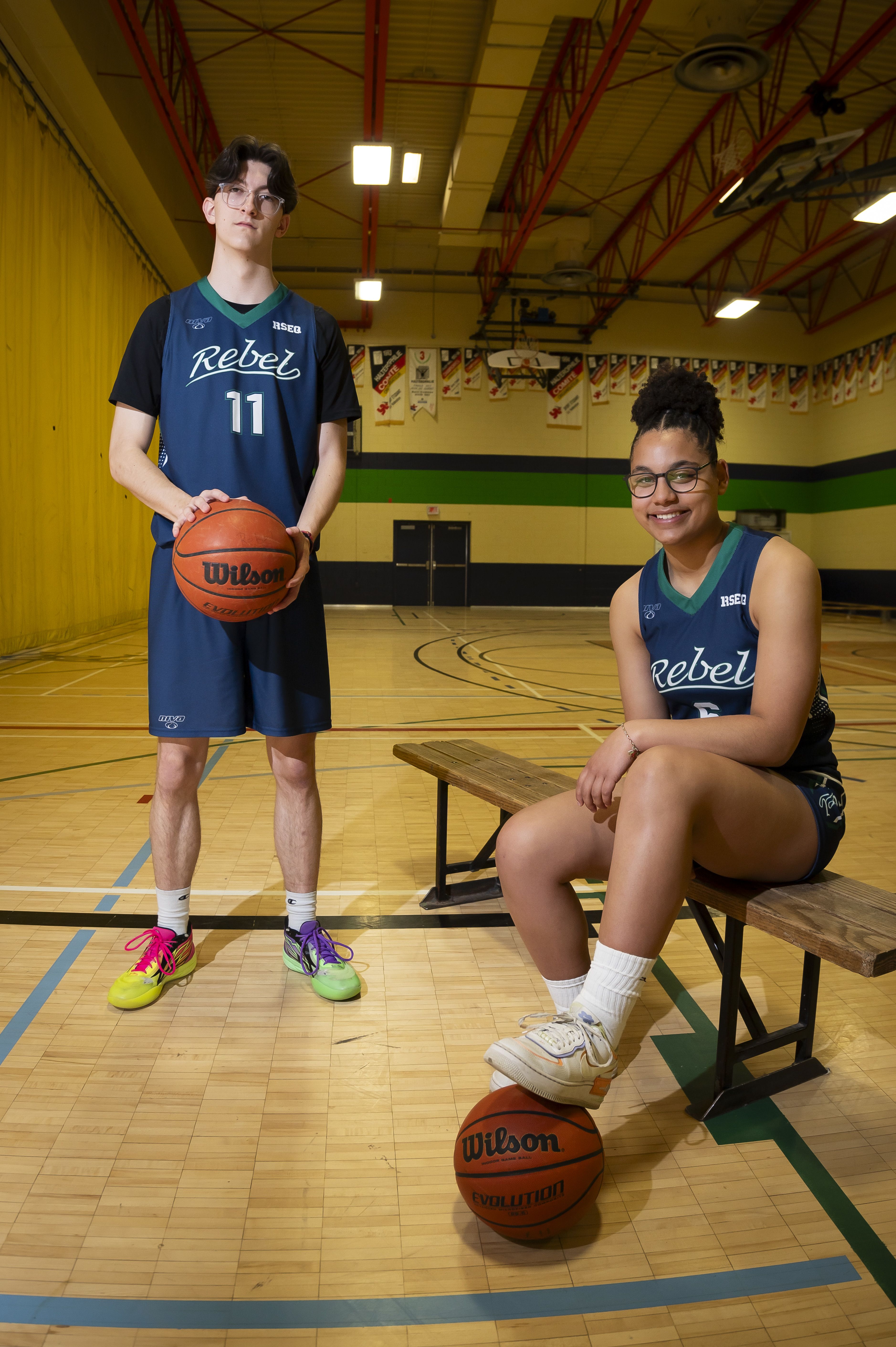 Deux élèves athlètes de basketball de l’école secondaire de la Montée.