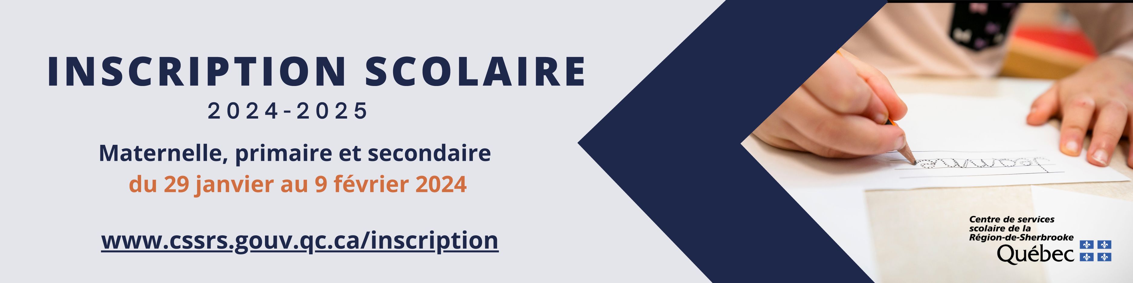 Dès le 29 janvier et jusqu’au 9 février inclusivement, allez sur le site du Centre de services scolaire de la Région-de-Sherbrooke (CSSRS) pour procéder à son inscription.