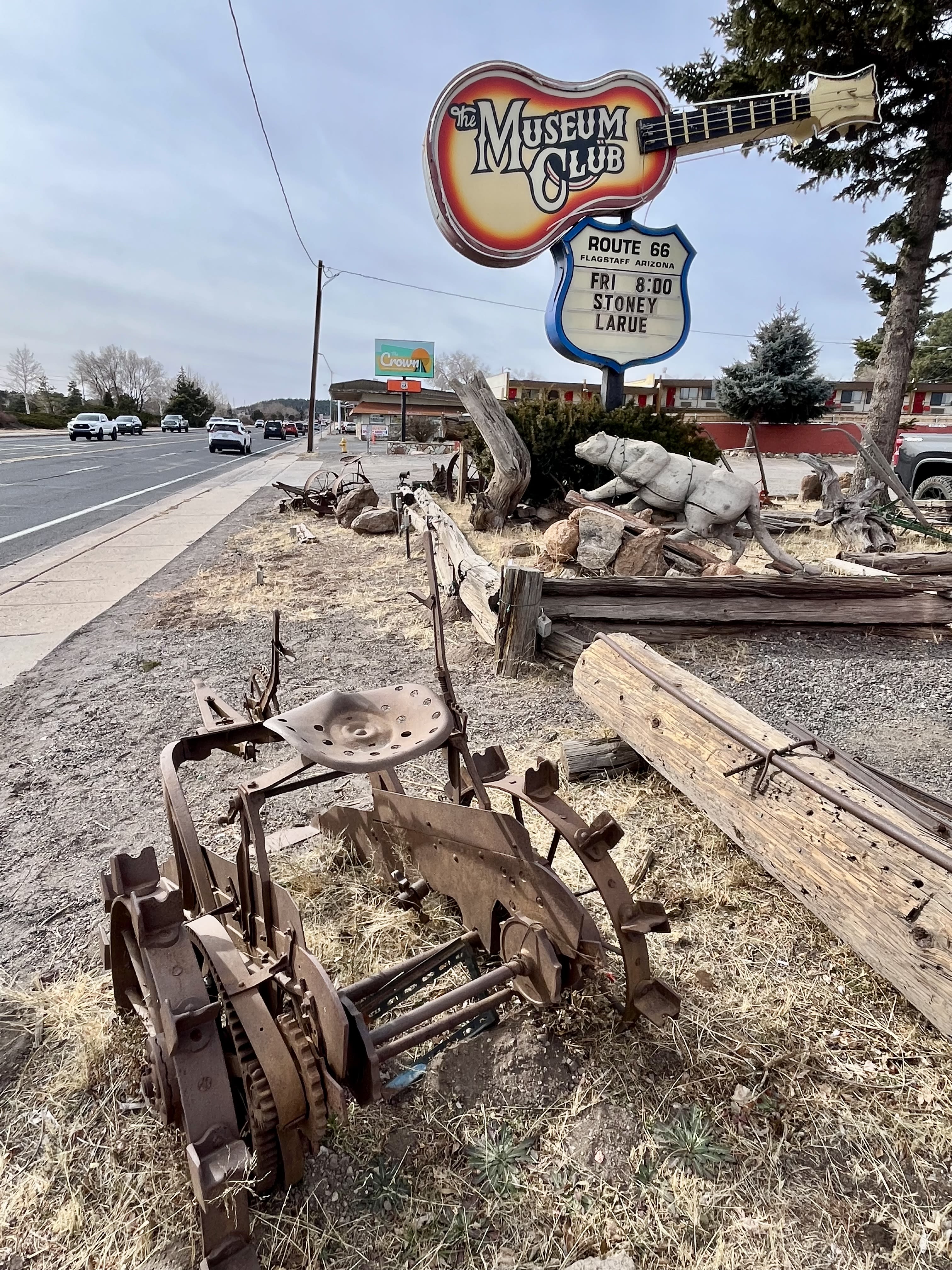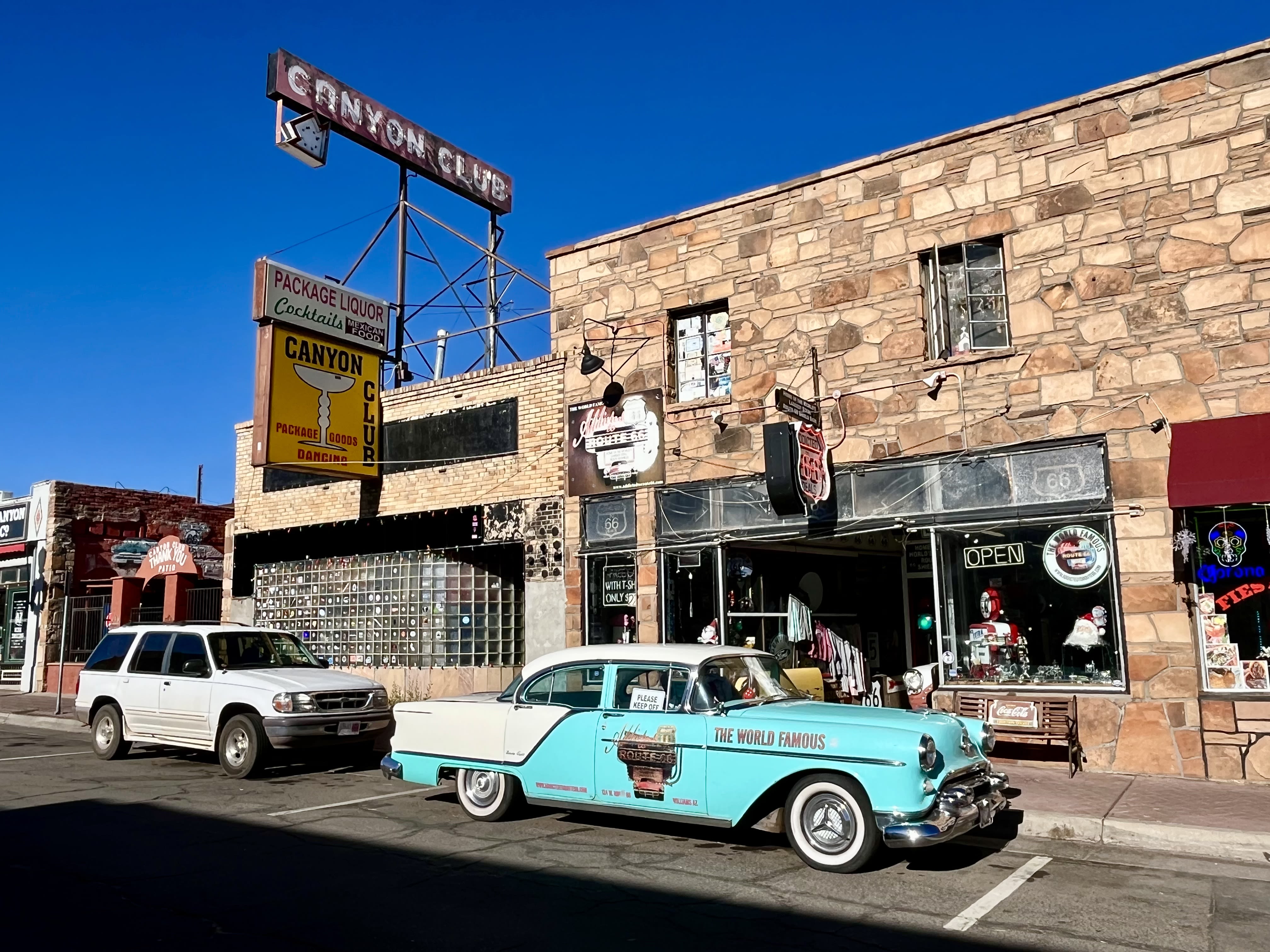 En voiture le long de la Route 66, on voudra certainement finir la soirée au Museum Club, un bar installé dans un bâtiment de rondins de bois ayant d’abord servi de musée de la taxidermie. Ouvert en 1936, il attire les foules pour la danse ou le karaoké.