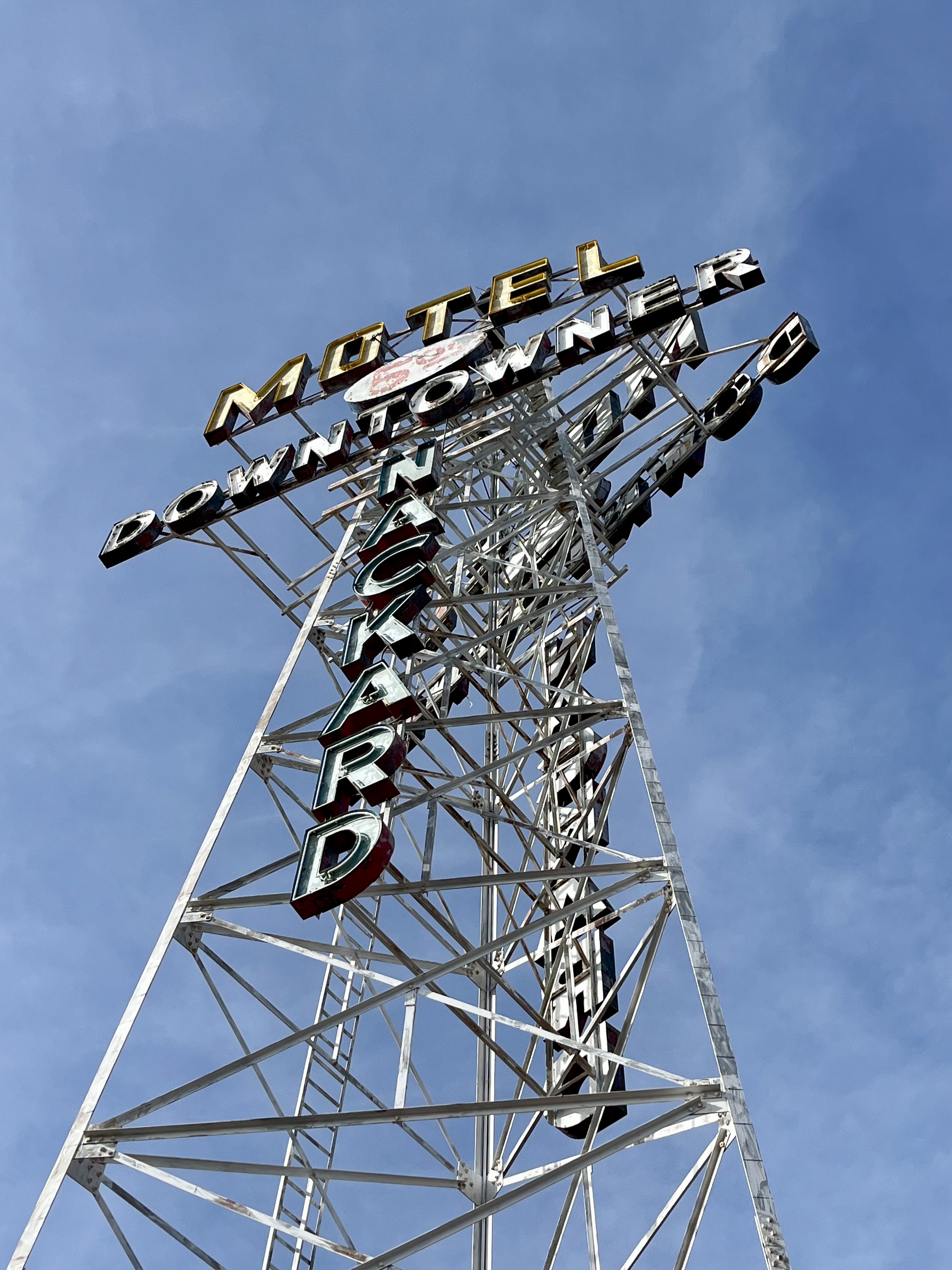 Relique d'une autre époque, cette enseigne marque l'emplacement du Motel Downtowner. (Jonathan Custeau/La Tribune)