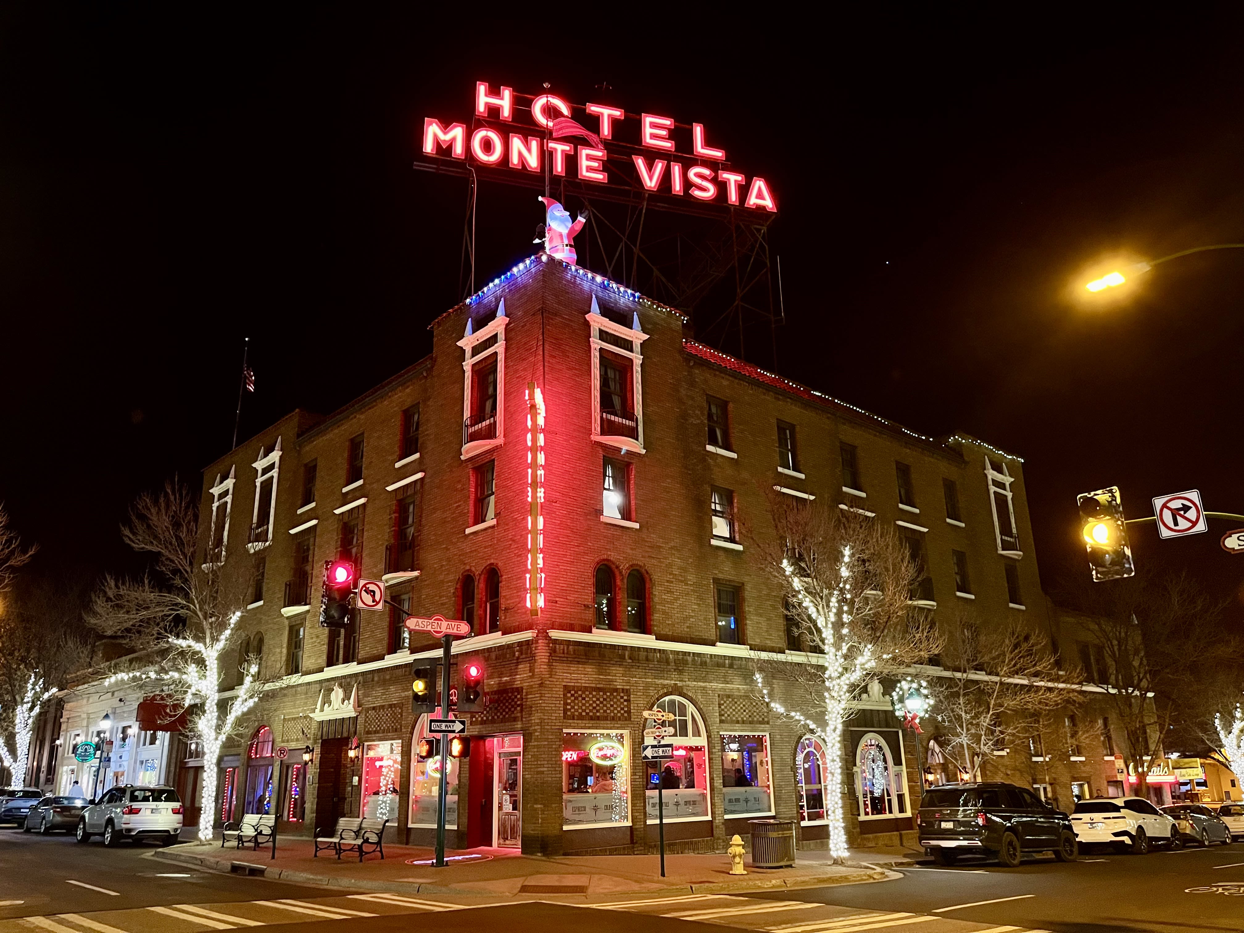 L’Hôtel Monte Vista compte aussi une enseigne lumineuse surdimensionnée. Et on raconte que ses couloirs seraient hantés.
