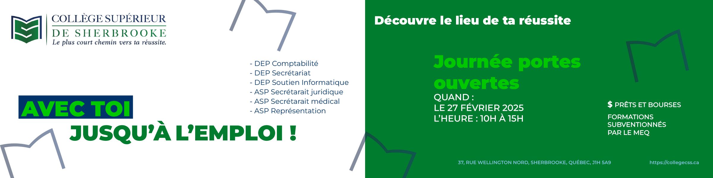Ça vous intéresse? Désormais installé au 37, rue Wellington Nord, en plein cœur du centre-ville, le Collège Supérieur de Sherbrooke propose justement trois DEP (comptabilité, secrétariat et soutien informatique) ainsi que trois ASP (représentation, secrétariat juridique et secrétariat médical). Il s’agit pour la plupart de formations subventionnées.