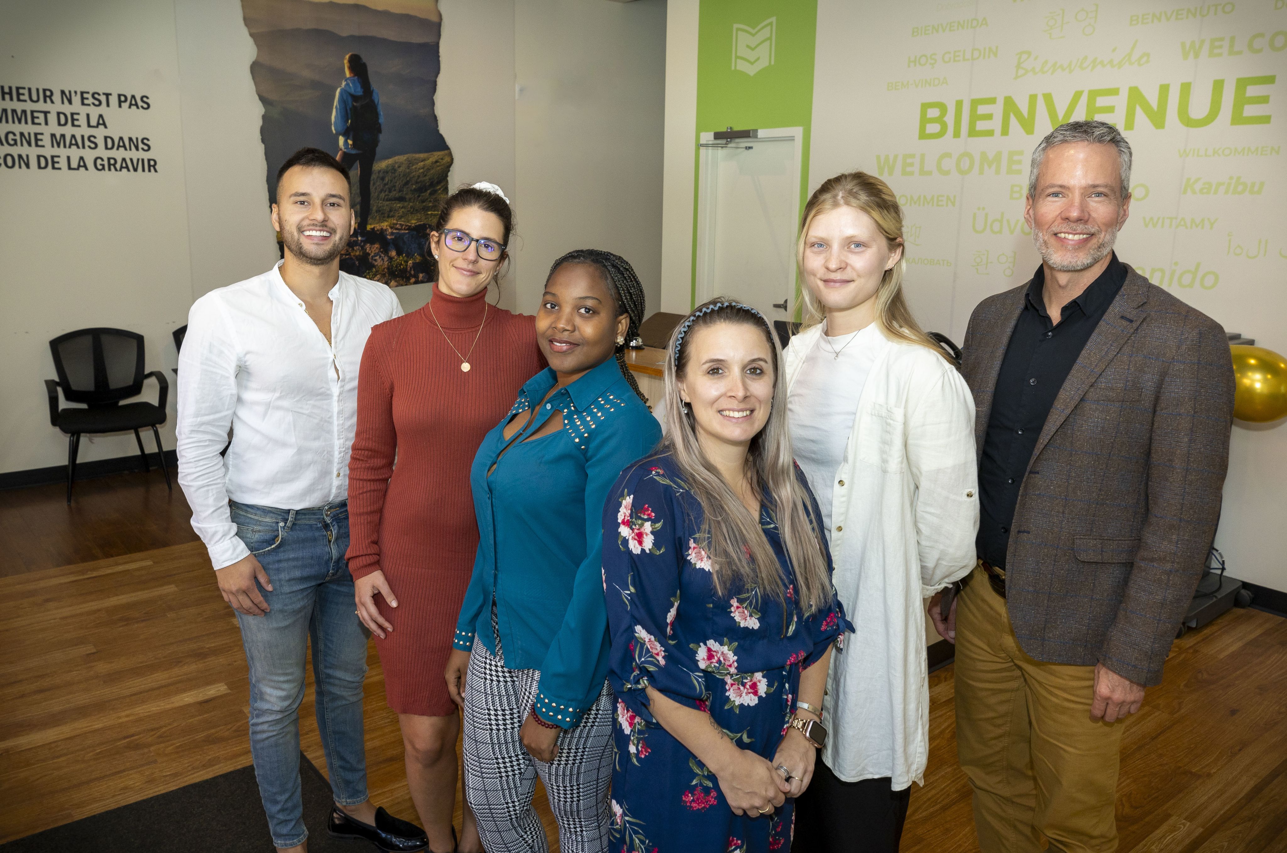 Camilo Delgado, enseignant; Dominique St-Jean, directrice adjointe; Winnie Jane-Leblanc, réceptionniste; Catherine Royer, enseignante; Camille Normand, enseignante; Steve Dallaire, directeur.