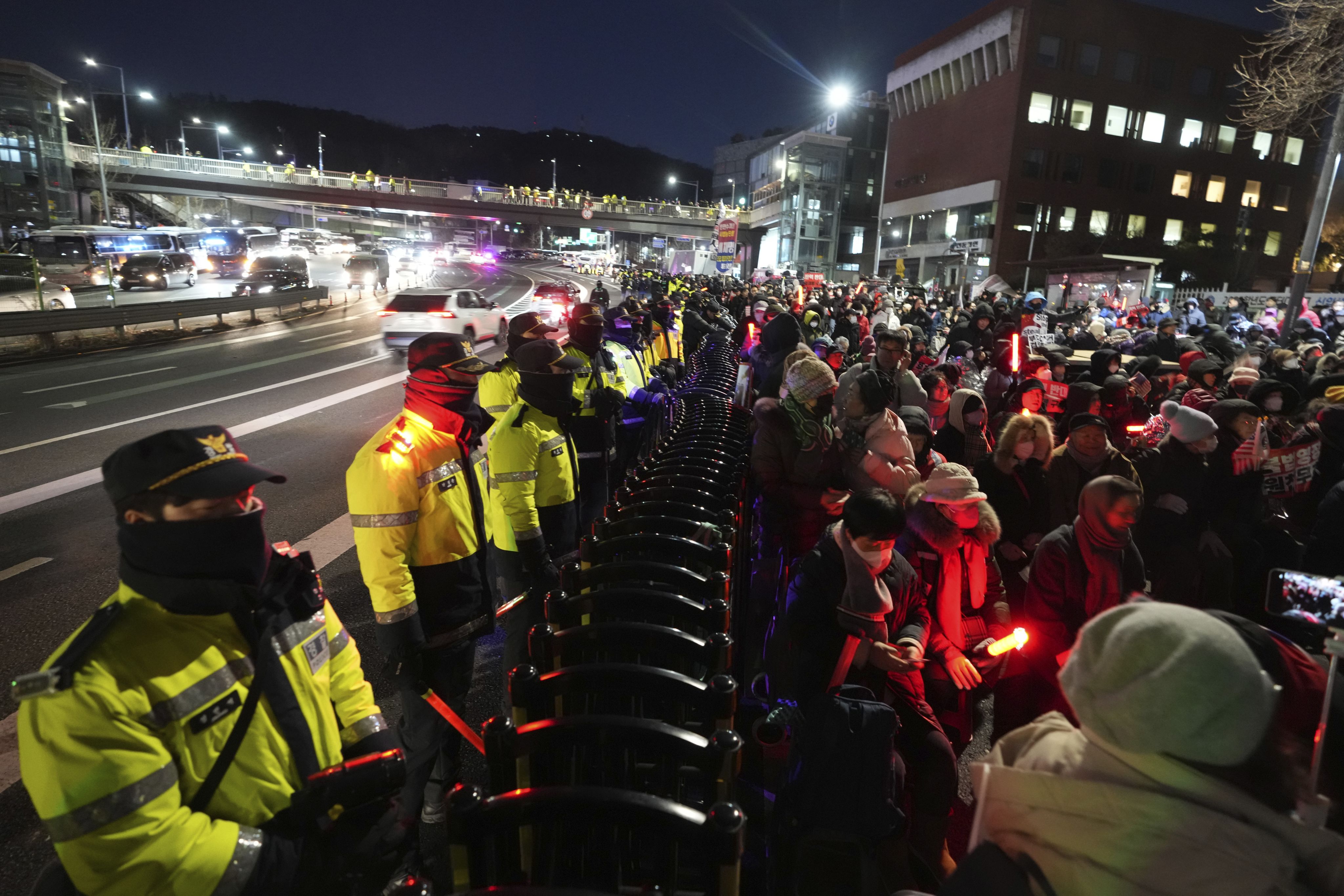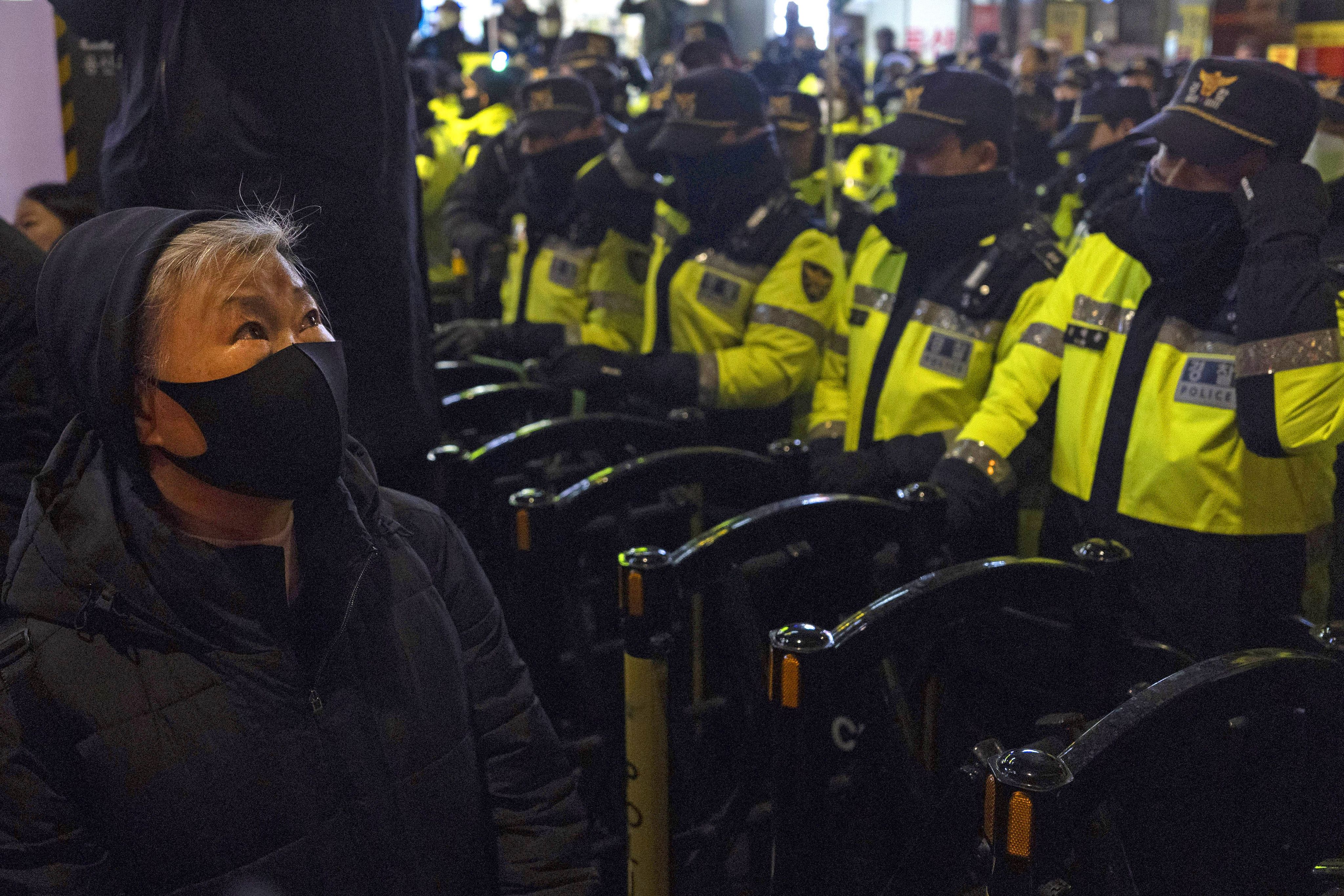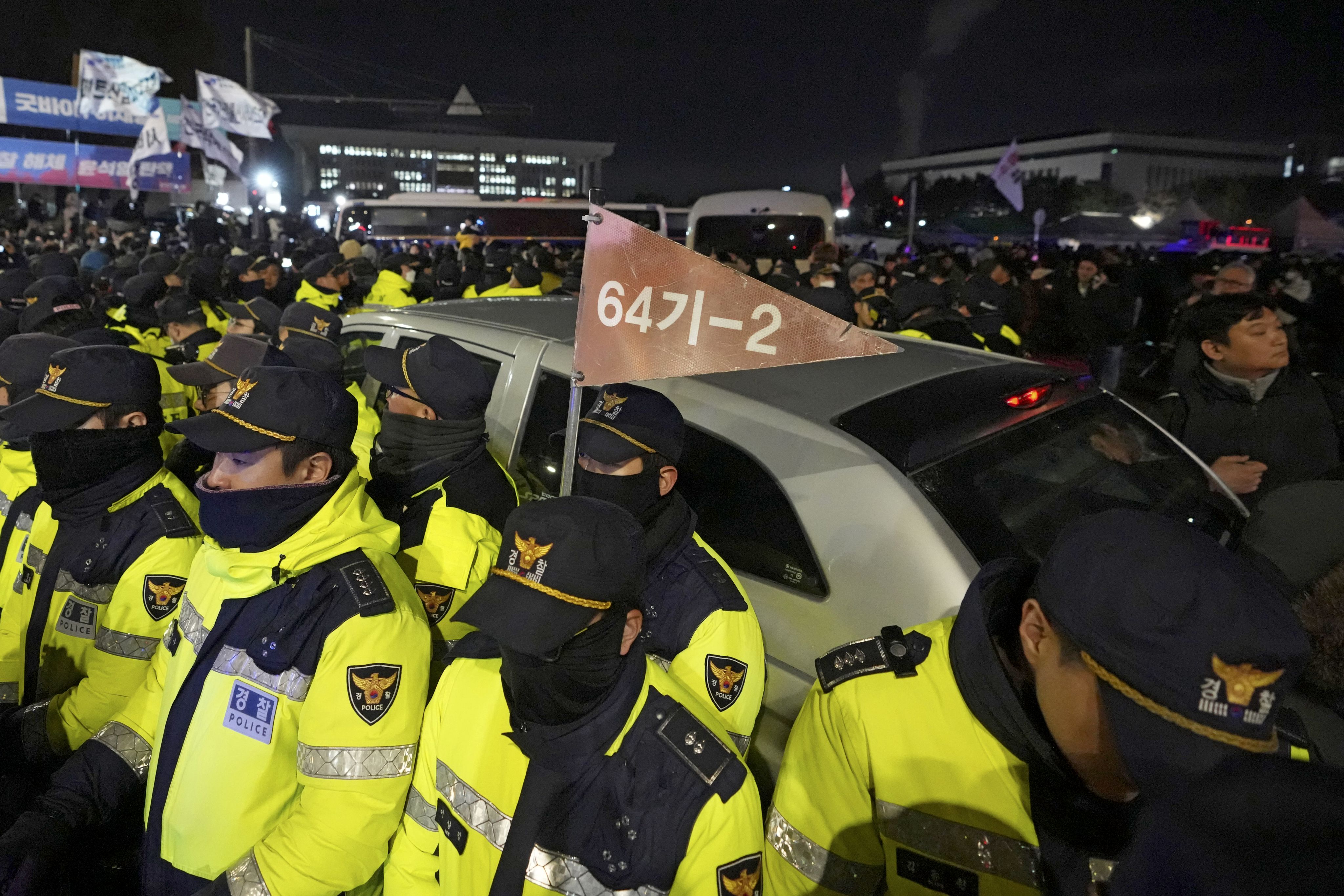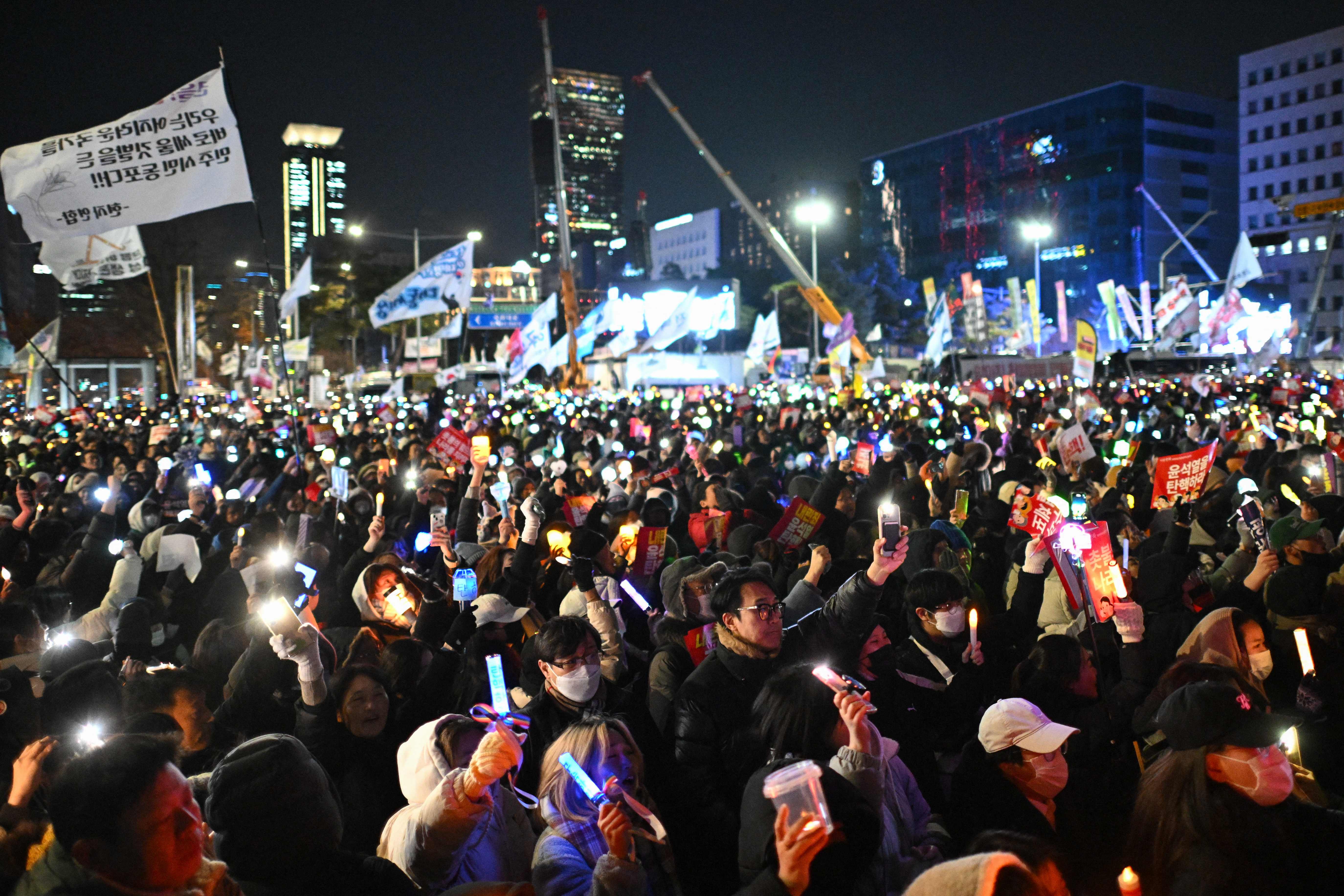 Manifestation autour de l’Assemblée nationale de Séoul, le 3 décembre 2024. Durant le mois de décembre 2024, après la tentative de coup d’État, les manifestations vont devenir quotidiennes. (Lee Jin-man/AP)