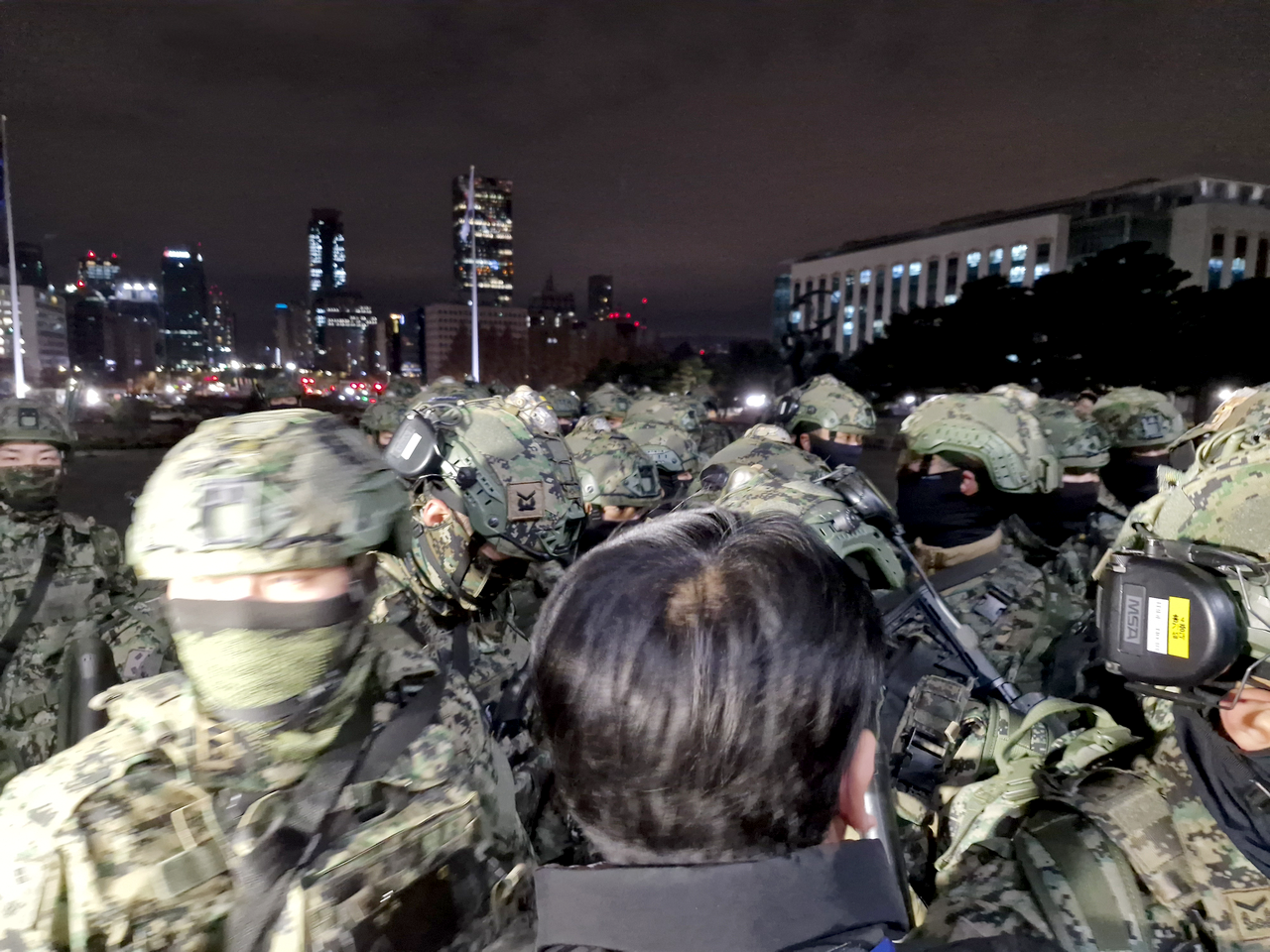 Très vite, des vidéos se mettent à circuler. On voit le président Yoon faire un discours «à la nation». Les réseaux sociaux s’enflamment. Certains croient apercevoir des tanks sur les grands boulevards. Et des soldats autour de l’Assemblée nationale!