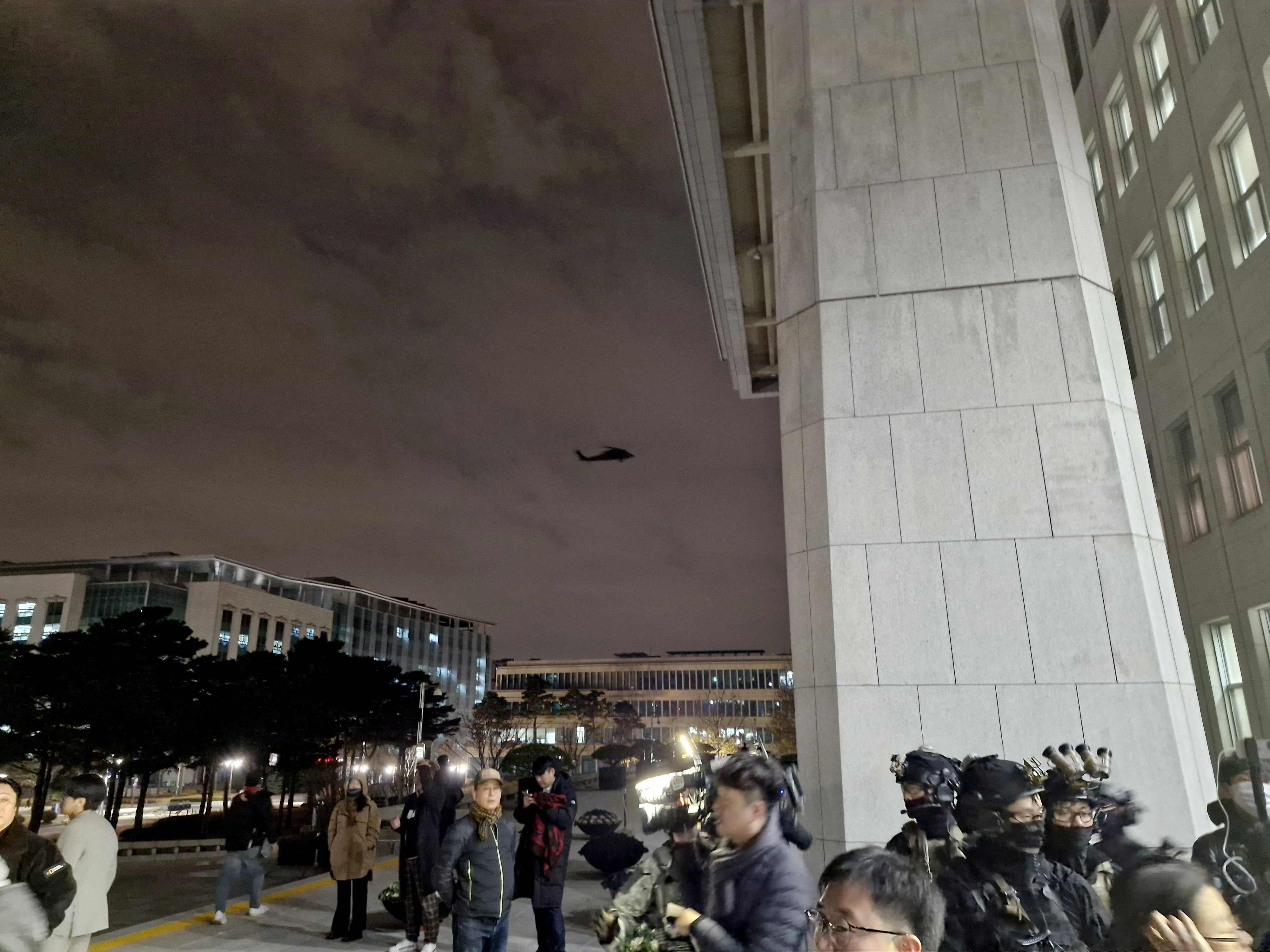 Des députés escaladent la grille d’entrée de l’Assemblée. Ils veulent se rendre à l’intérieur du bâtiment. La loi martiale peut encore être annulée si une majorité de parlementaires s’y opposent! Le temps presse, puisque les soldats sont en train de bloquer tous les accès!