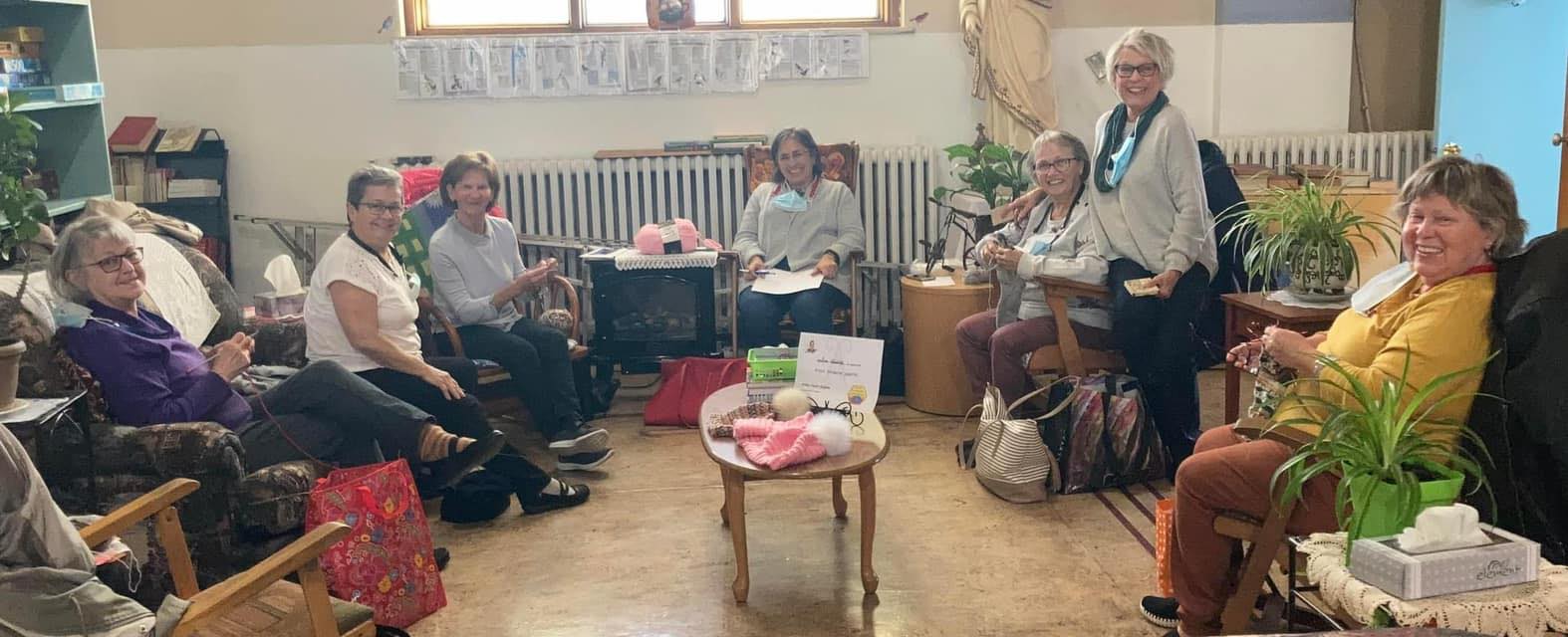 Les tricoteuses de l’AFÉAS de Saint-Eugène ont leur repaire de création dans un local du bâtiment. (Fournie)