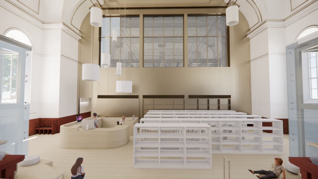Un immense mur en partie vitré va séparer la salle de spectacle de la future bibliothèque municipale.