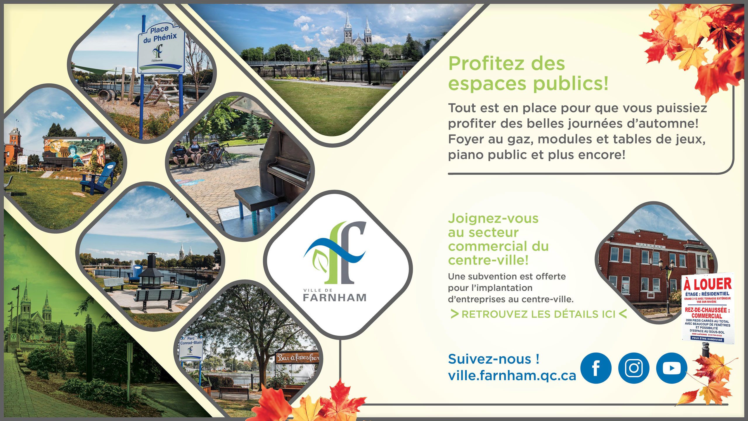 Travaillant en étroite collaboration avec une soixantaine d’organismes du milieu, Farnham s’assure ainsi de répondre à l’ensemble des besoins exprimés par sa population. Envie d’en savoir plus sur cette jolie municipalité? Nous vous invitons à consulter ce dossier immersif qui met en valeur certaines des particularités de ce milieu dynamique