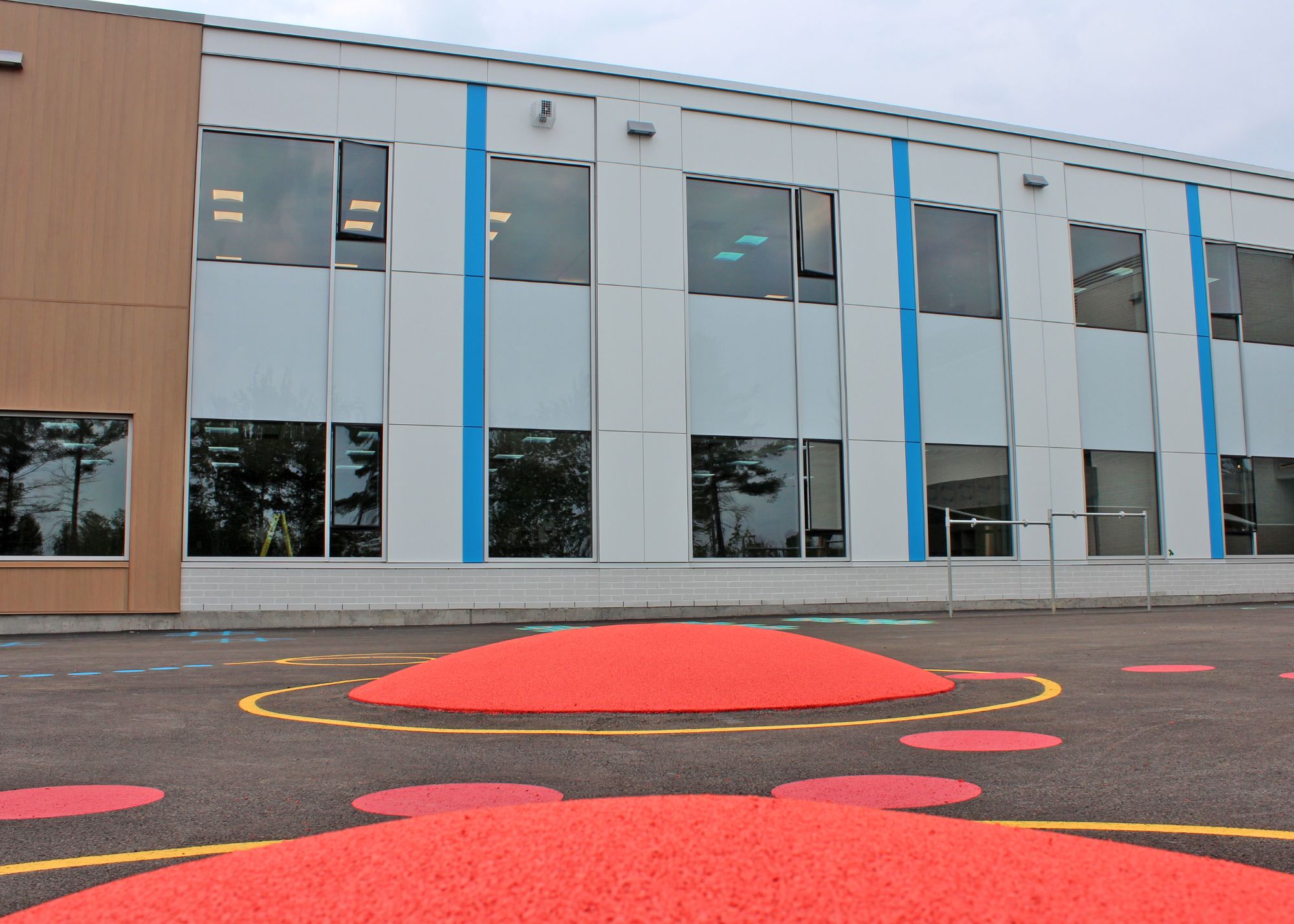 Située en bordure du Domaine du Sentier, au cœur d’un secteur boisé de Farnham, cette école toute neuve accueille désormais les enfants de la maternelle à la 6e année dans un bâtiment lumineux, pensé pour stimuler l’apprentissage, le mouvement et le lien avec la nature.