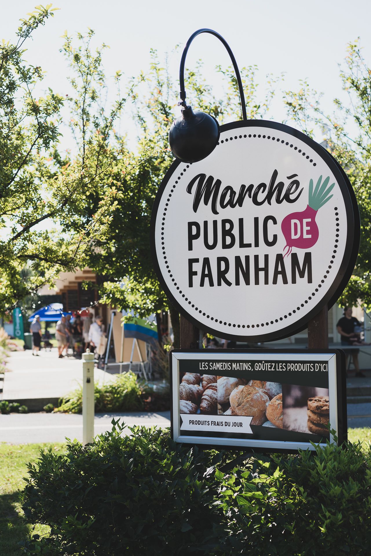 Depuis le mois de juin et jusqu’au 27 septembre, le Marché public de Farnham accueille les visiteurs tous les samedis, entre 8 h et 12 h à la Station-Pierre-Bériau. Plus d’une douzaine de producteurs et d'artisans sont réunis pour offrir des étalages colorés de fruits et légumes frais ainsi que d’autres produits du terroir. « C’est le lieu de rassemblement par excellence de notre communauté. En plus de remplir notre panier de beaux produits locaux, on a la chance de parler avec nos voisins et les exposants », ajoute le maire.