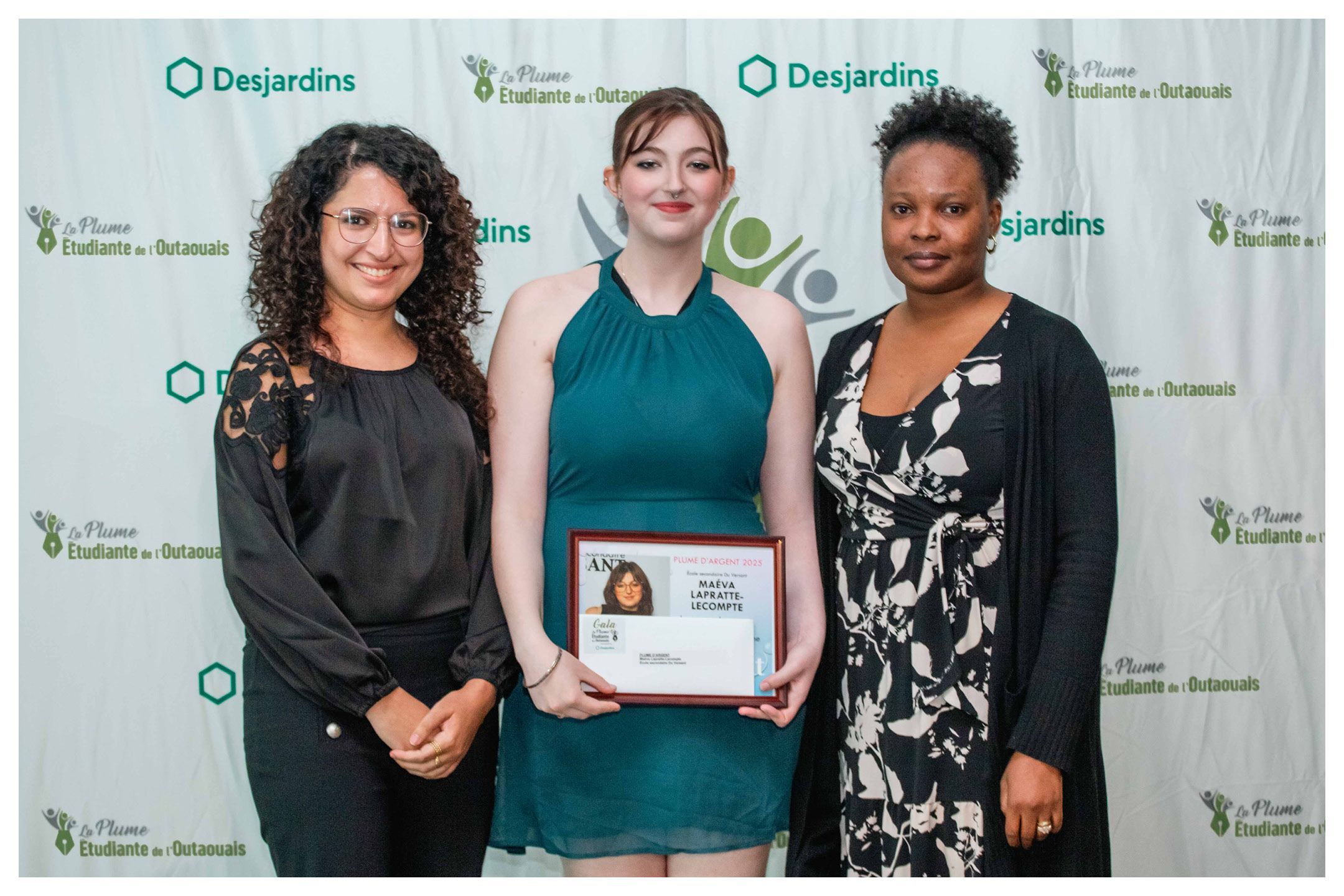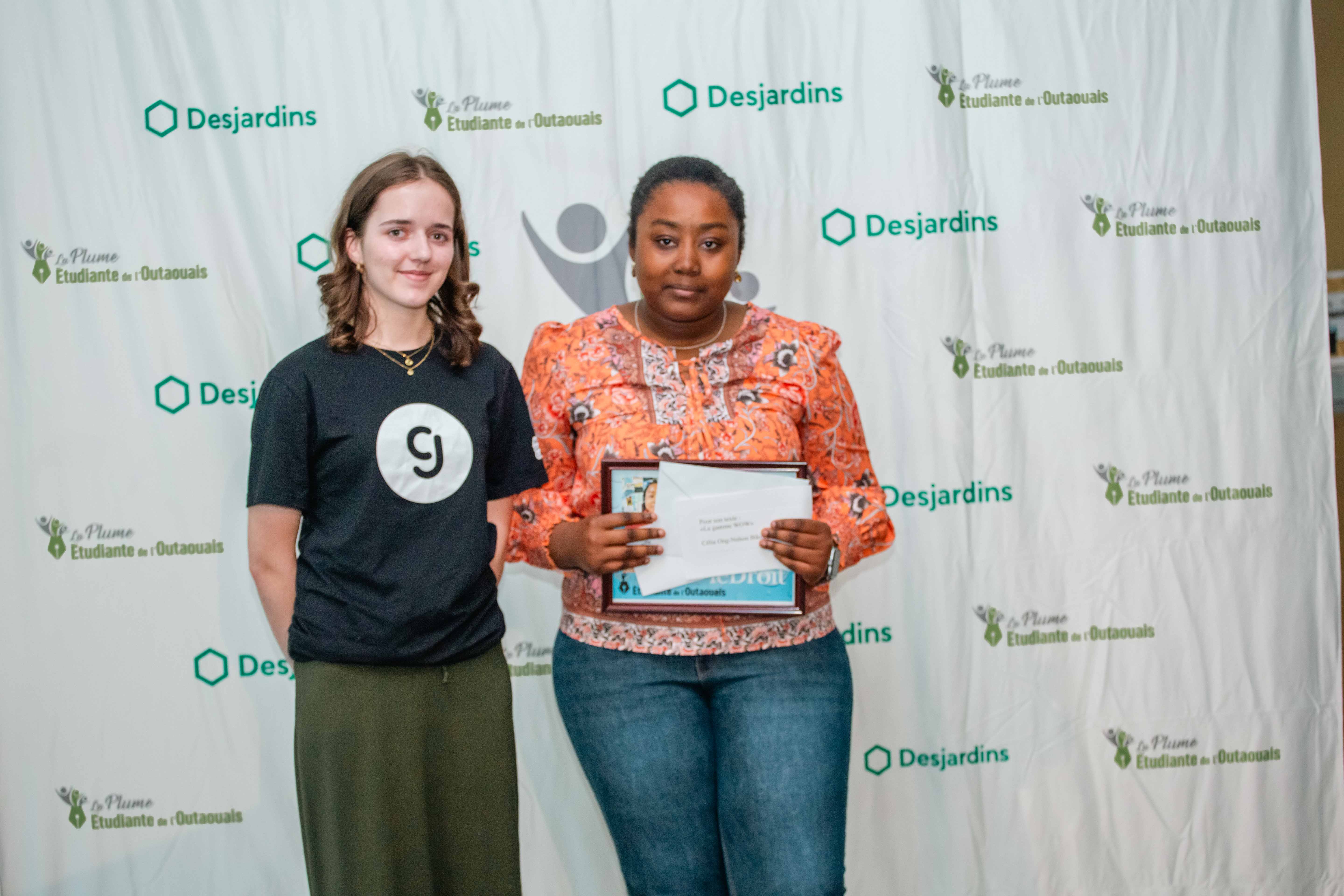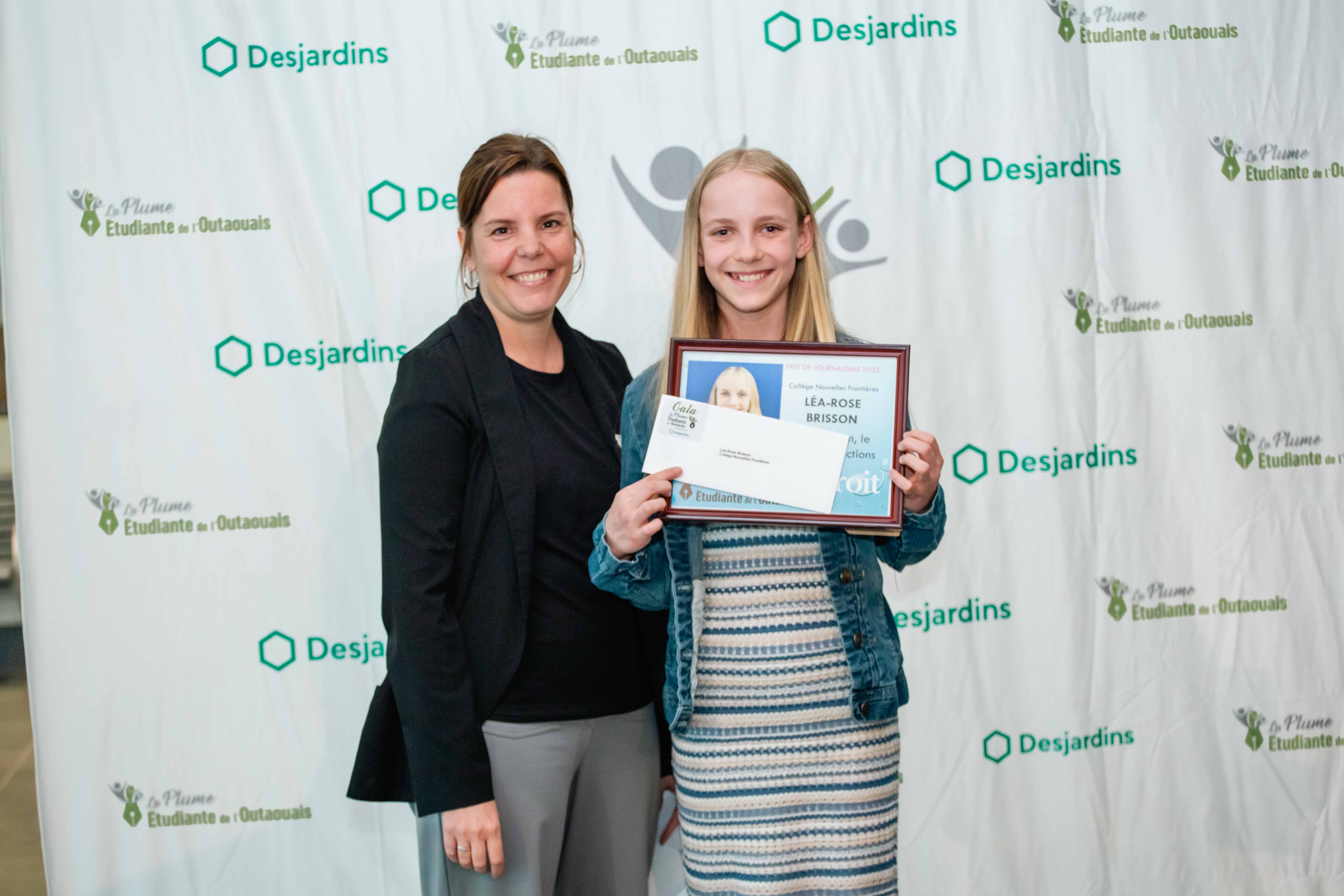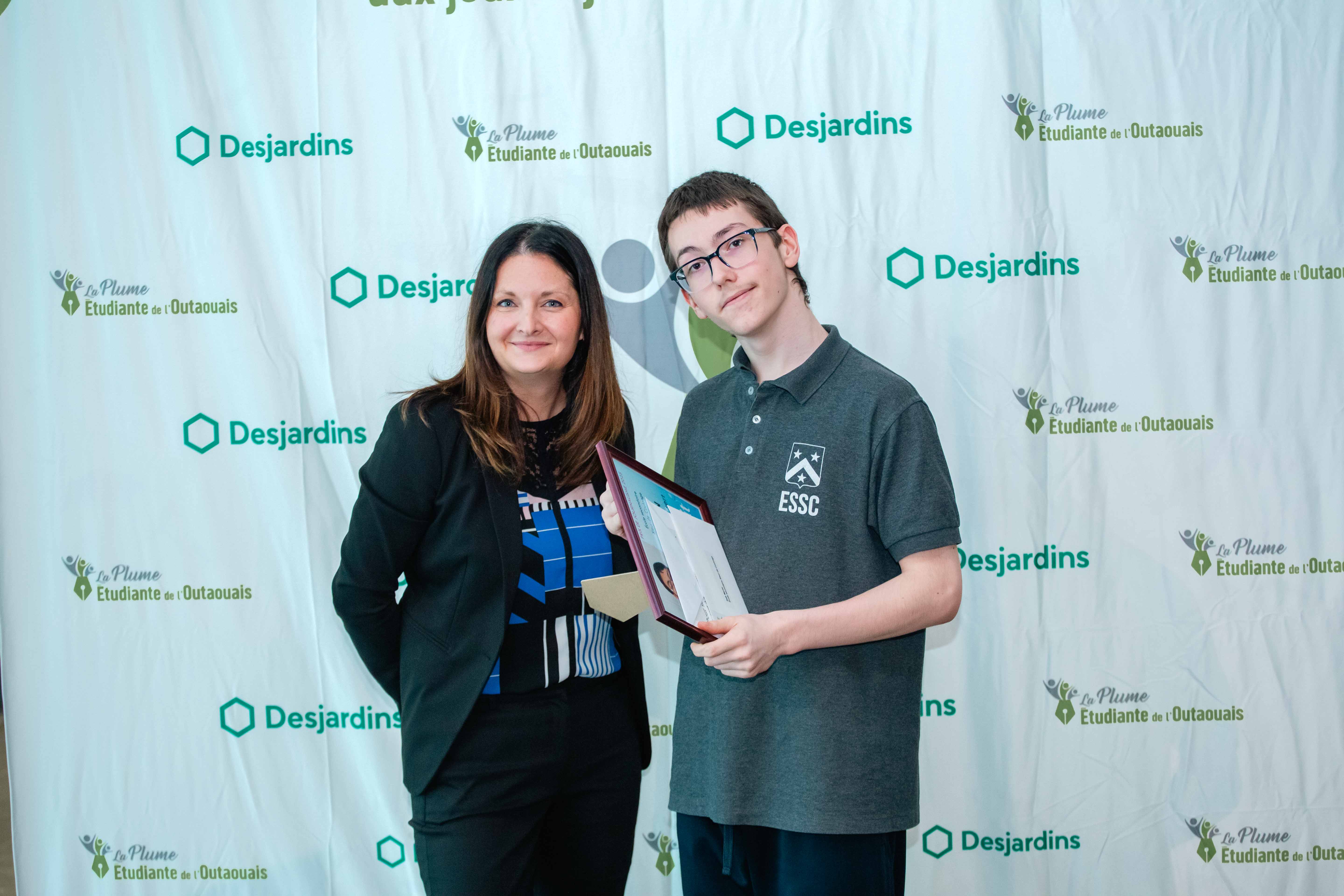 Partenaire présentateur du 23e Gala de La Plume Étudiante de l’Outaouais, Desjardins a voulu souligner les efforts déployés en développement durable en remettant une bourse au meilleur texte traitant du sujet.
