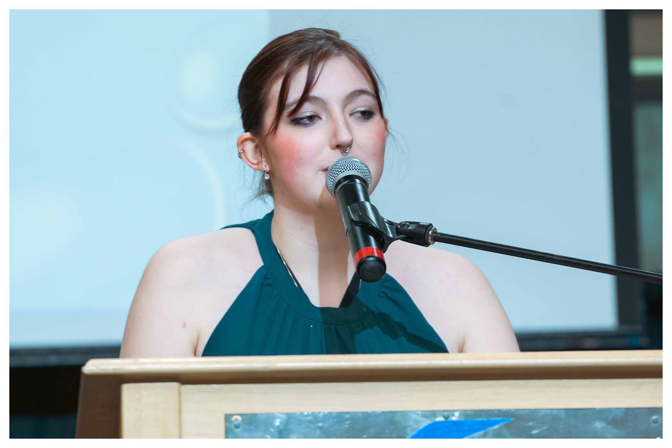 Le 23e Gala de la Plume Étudiante de l’Outaouais, présenté par Desjardins, est aussi un tremplin pour nos jeunes artistes du secondaire en Outaouais. Cette année, c’est une jeune artiste, Maéva Lapratte-Lecompte de l’école secondaire Du Versant, qui a présenté son slam «comment tuer un vautour». Ce slam lui a permis de se qualifier pour la finale provinciale de Secondaire en spectacle qui aura lieu à Amqui à la fin du mois de mai. Maéva est également journalisme pour son école, elle qui a mérité la plume d’argent cette année.