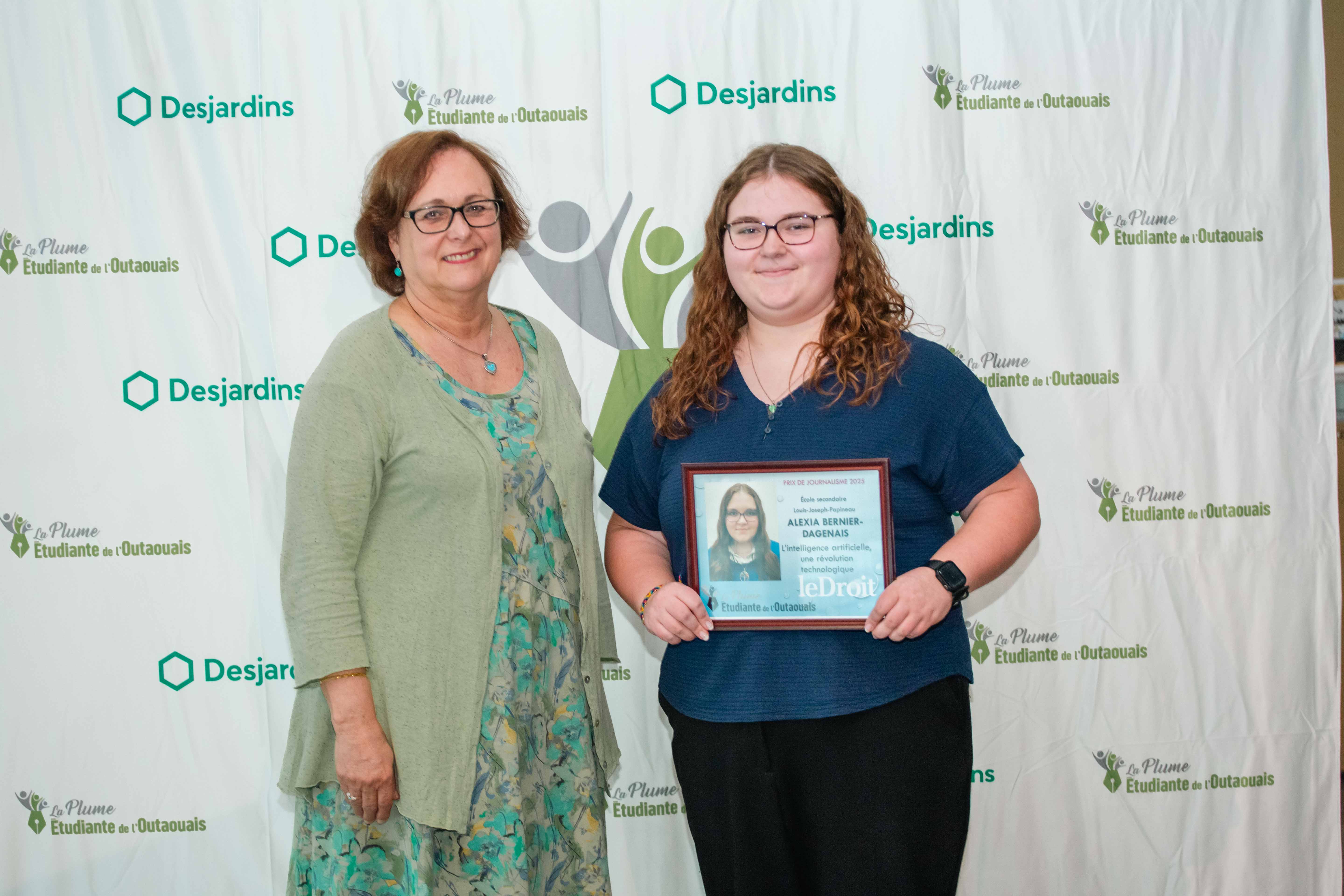 Le prix de journalisme de l’école secondaire Louis-Joseph-Papineau a été décerné à Alexia Bernier-Dagenais par Johanne Légaré, administratrice à La Plume de l’Outaouais, au nom de Brigil.