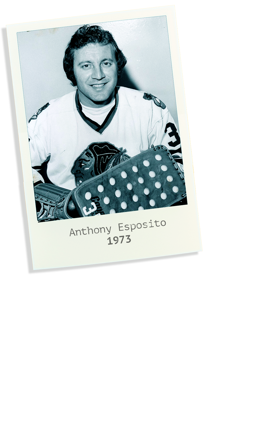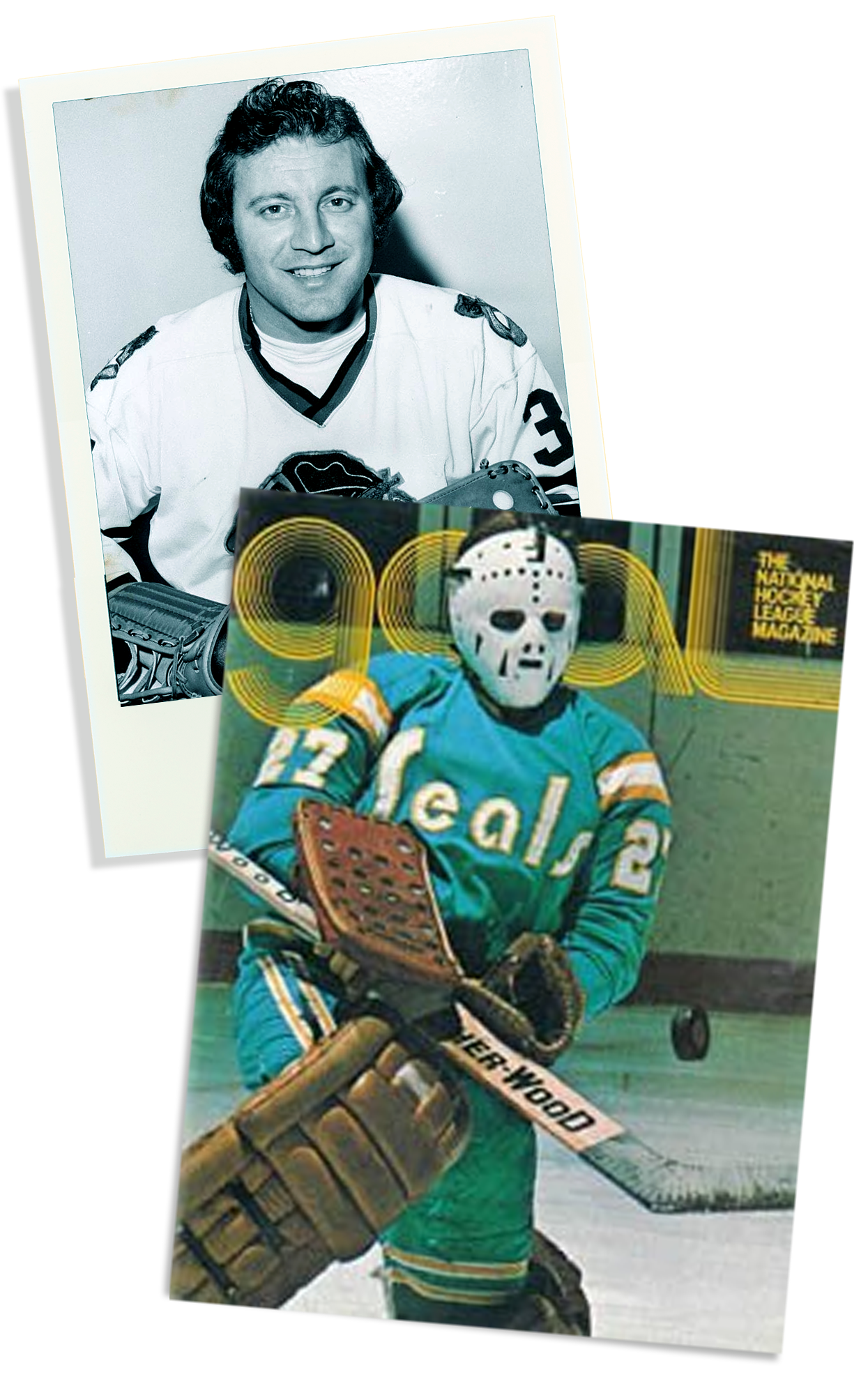 Photo 1: Anthony Esposito 1973. (Wikipédia). Photo 2: Aux premières loges pour voir les Golden Seals porter des patins blancs, Meloche garde de bons souvenirs de son passage en Californie. (Magazine de la LNH)