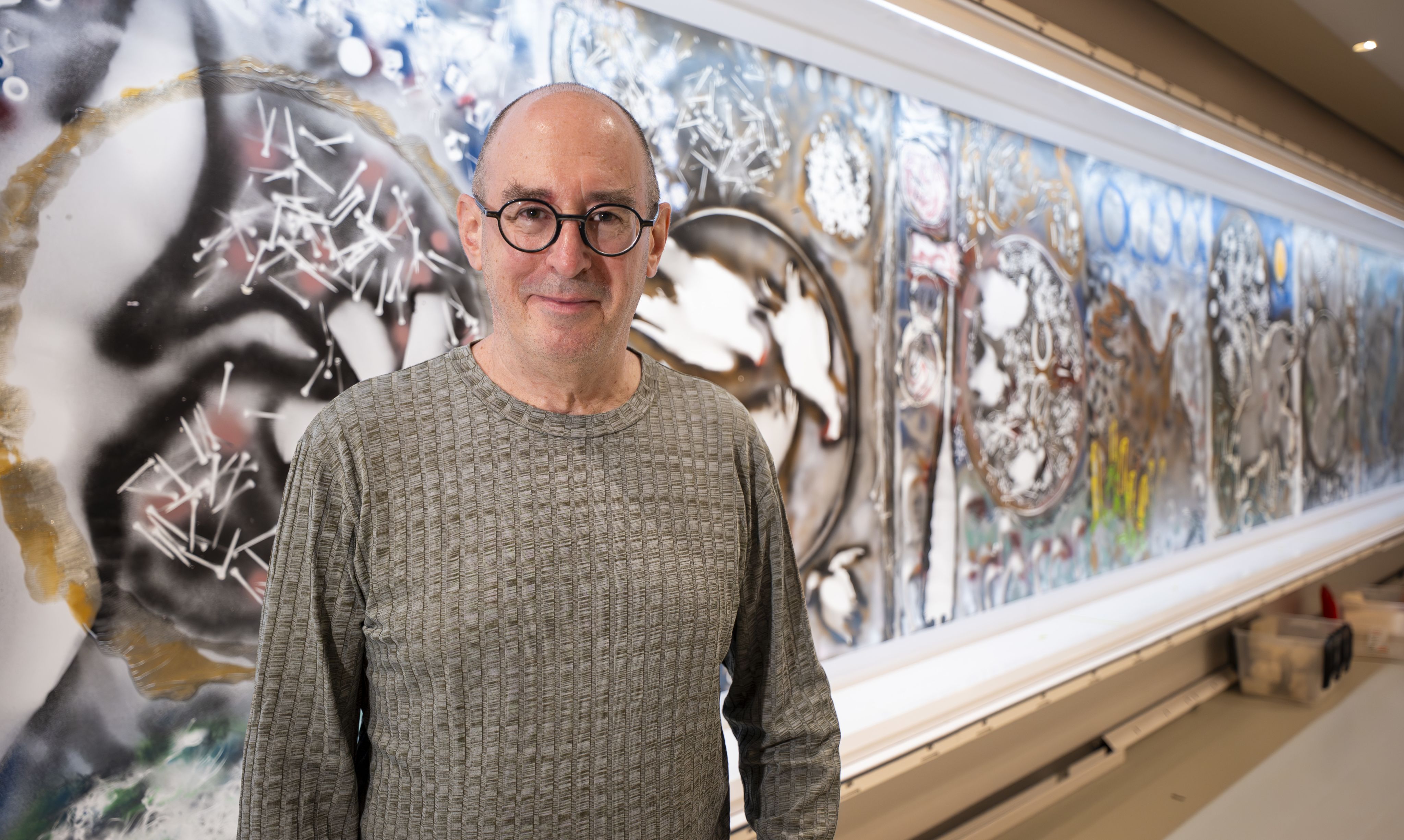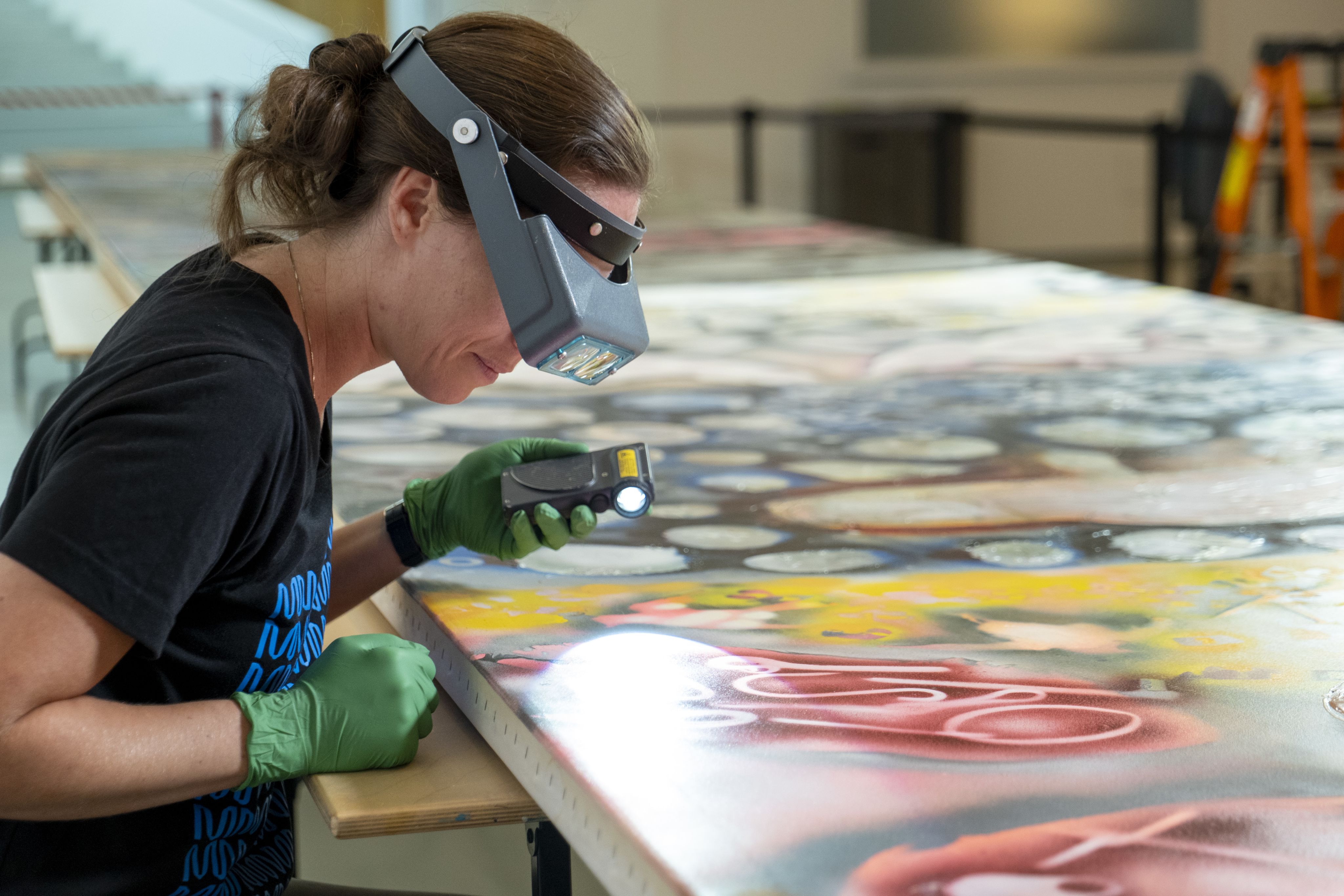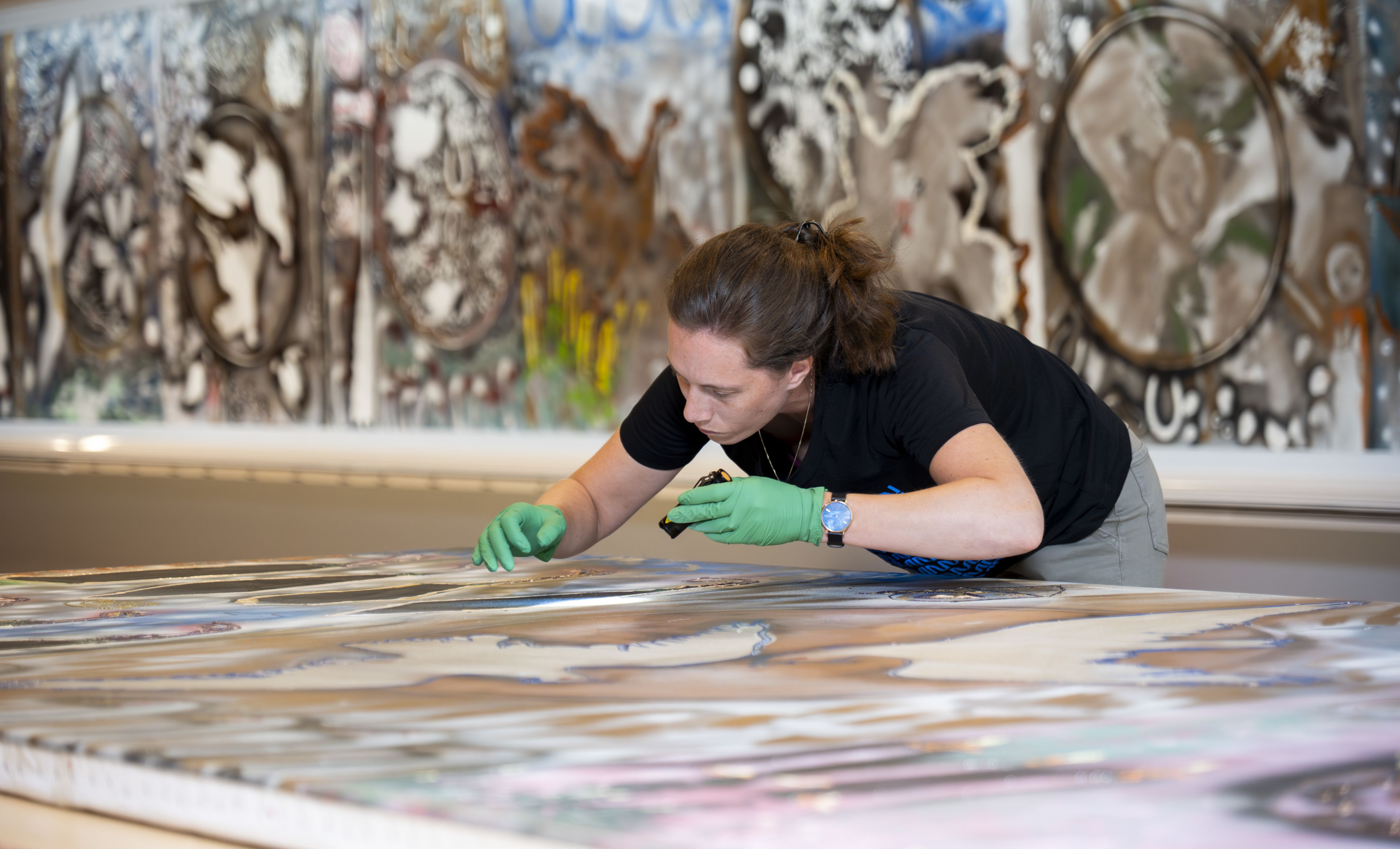 «Les artistes y vont selon leur inspiration… Peut-être que [Riopelle] trouvait ça super intéressant [l’effet perlé] et qu’il aimait ça! Mais, pour la conservation, ça nous pose plus de défis», ajoute Aimie Turcotte, en rigolant.