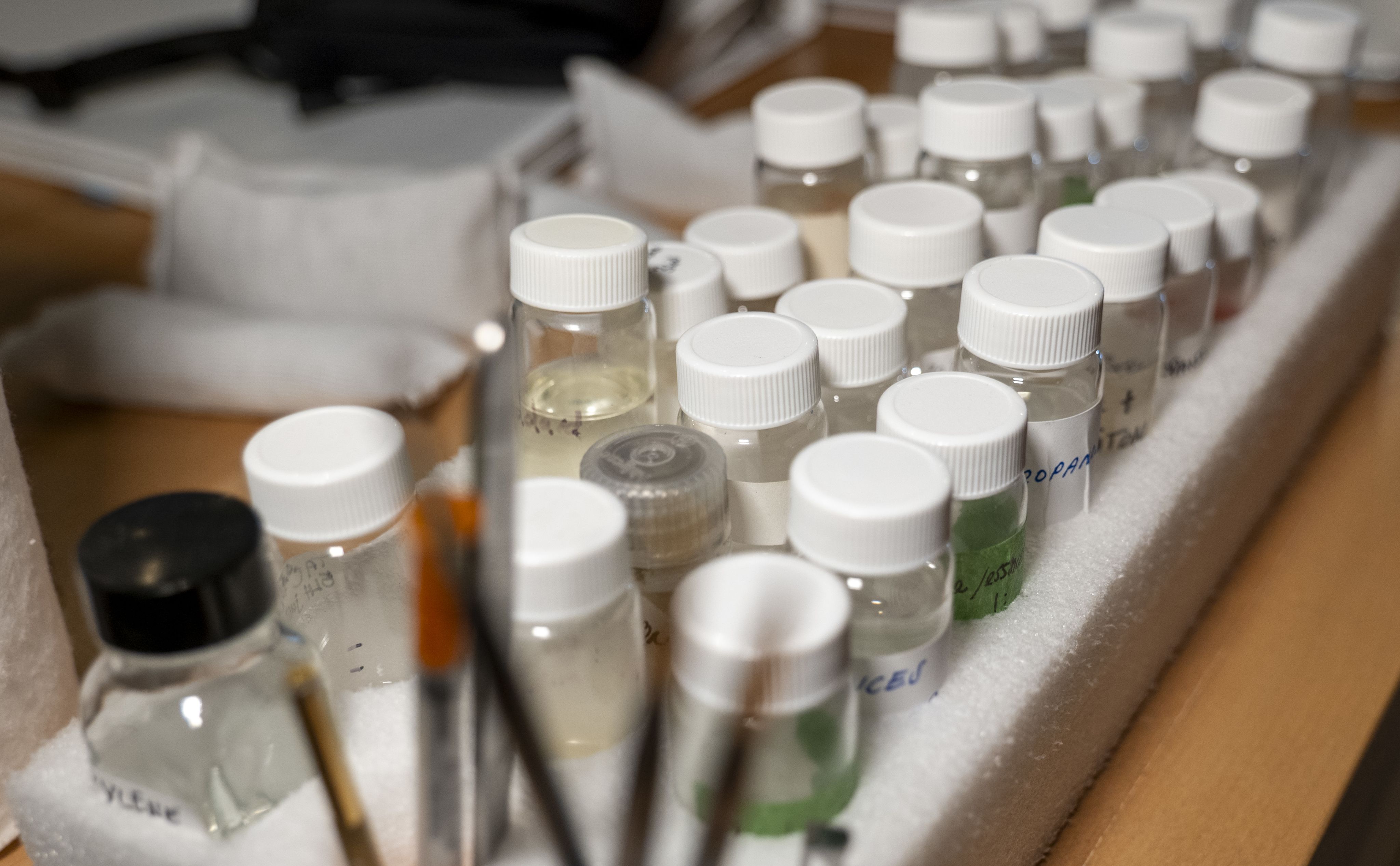 En général, chaque toile a ses particularités: des tests sont réalisés afin d’observer la réaction de l’œuvre face aux vernis, aux adhésifs, solvants et autres substances chimiques qui seront employés.