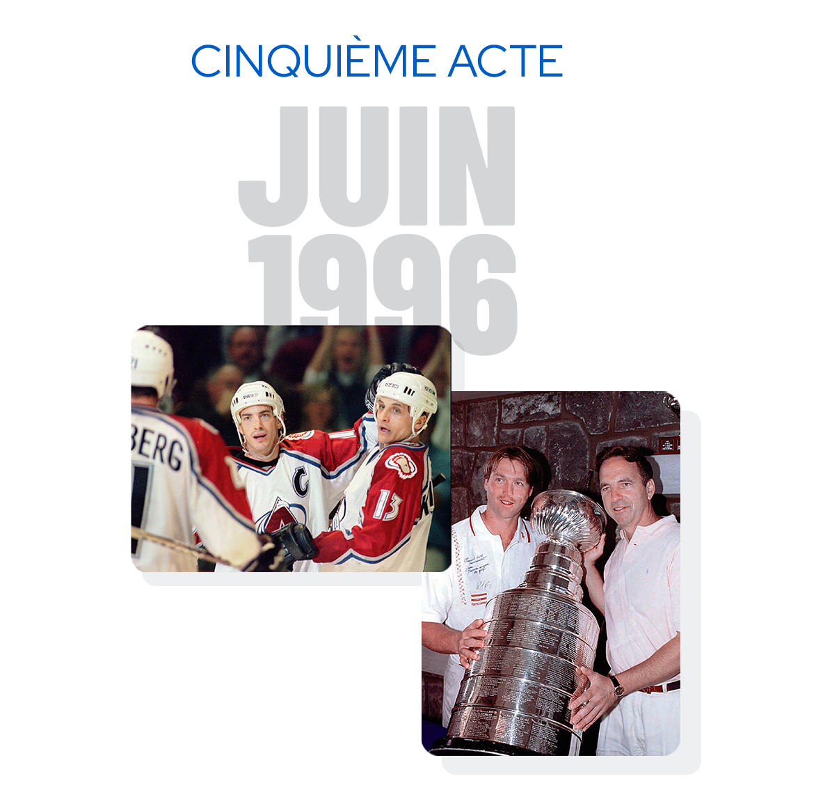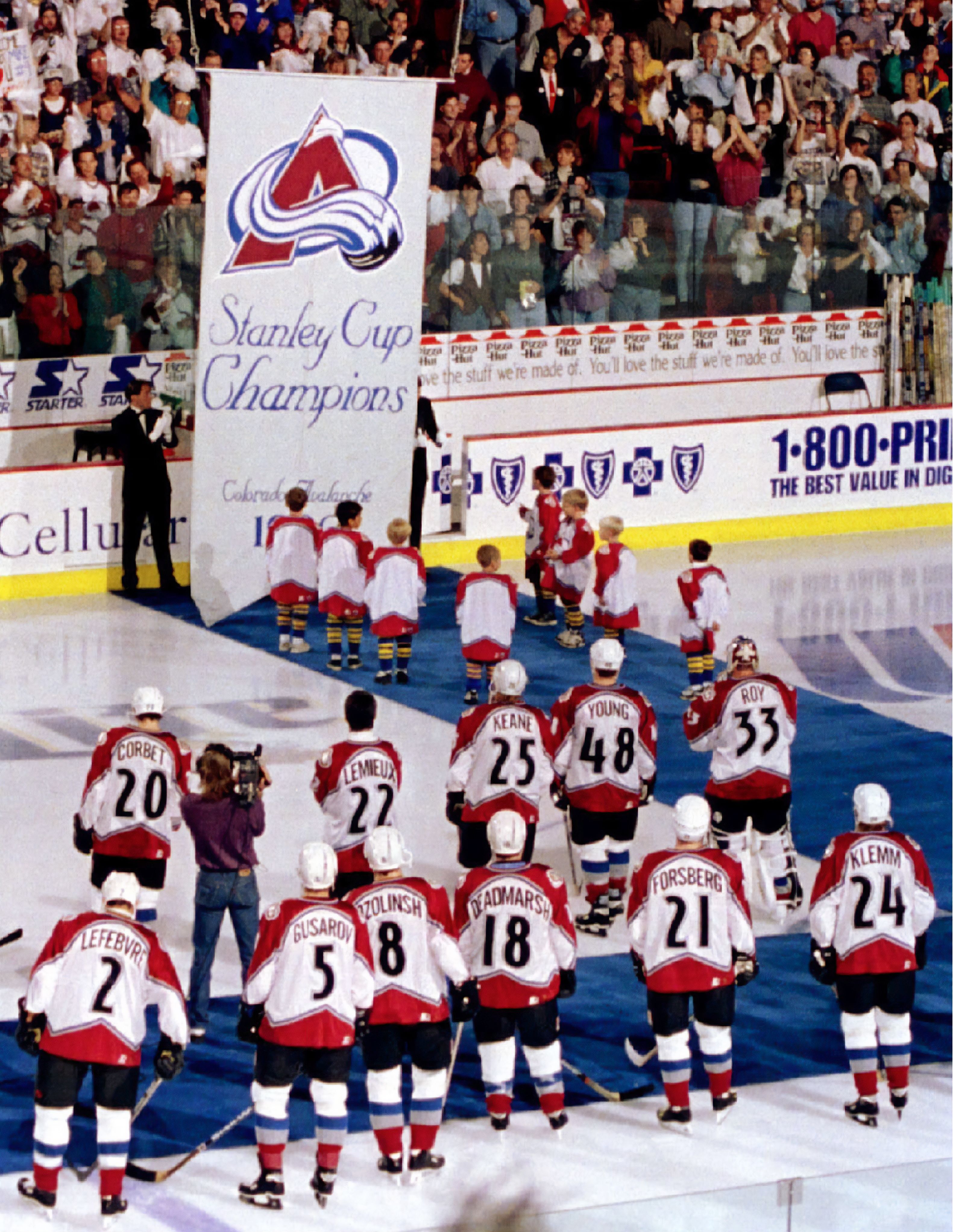 Le 10 juin 1996, Joe Sakic, Peter Forsberg, Patrick Roy, Adam Deadmarsh, Sandis Ozolinsh et les autres remportent la Coupe Stanley. Il s’agit du premier titre de Denver au sein d’un des quatre circuits majeurs (LNH, NBA, NFL et MLB).