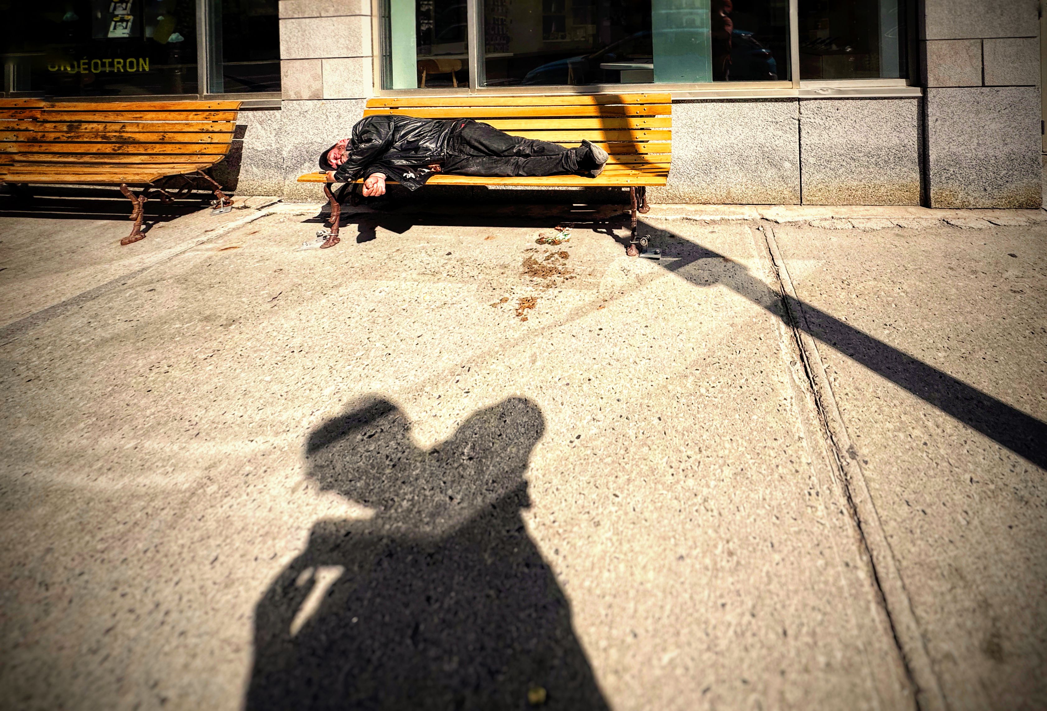 Il offre un peu de réconfort gratuit à qui veut s‘arrêter. Jeune, il a vécu dans la rue. Il sait qu’on ne serait tous qu’à trois événements de vie de se retrouver à la rue: rupture amoureuse, faillite, décès d’un proche, maladie, perte d’emploi, immigration récente.