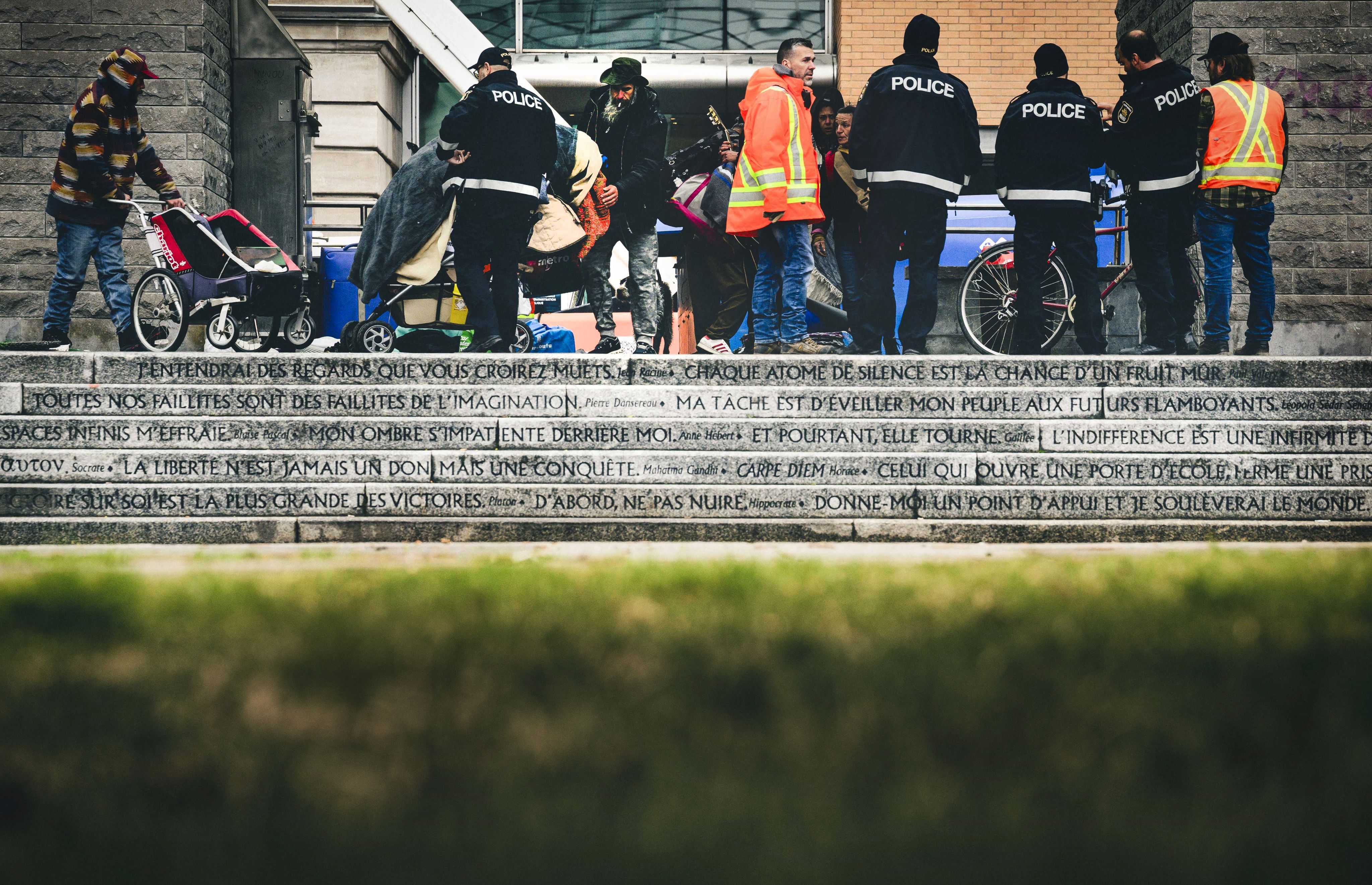 Sinon? Escortés par des policiers, des employés d‘entretien de la Ville ramassent et jettent. C’est ce qu’on appelle les opérations nettoyage. Au programme chaque jour au moins jusqu’à l’automne.