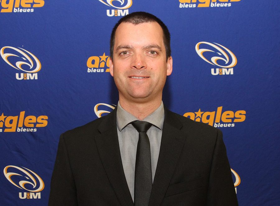 Dans sa deuxième carrière dans le monde du hockey, Damphousse a travaillé pour les Aigles bleus en temps que directeur général des opérations. (Photo Aigles bleus de l’Université de Moncton)