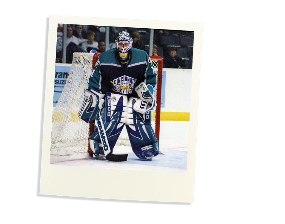 «J’ai passé une demi-saison avec leur club-école à Cincinnati. À ce moment, je me sentais un peu comme un gardien des mineures alors qu’ils comptaient déjà sur Jean-Sébastien Giguère, Martin Gerber et un jeune Ilya Bryzgalov. Dans les mois qui ont suivi, peut-être que ma valeur avait monté un peu, j’ai été de nouveau transigé. Je me suis retrouvé avec les Flames de Calgary à la date limite des échanges et j’ai terminé l’année avec les Flames de Saint John dans la LAH.»