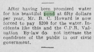 Près de dix ans avant que les Howard n’emménagent sur le site du domaine, on parle déjà du bel étang qui s’y trouve! (Photo Sherbrooke Daily Record, 28 août 1914)