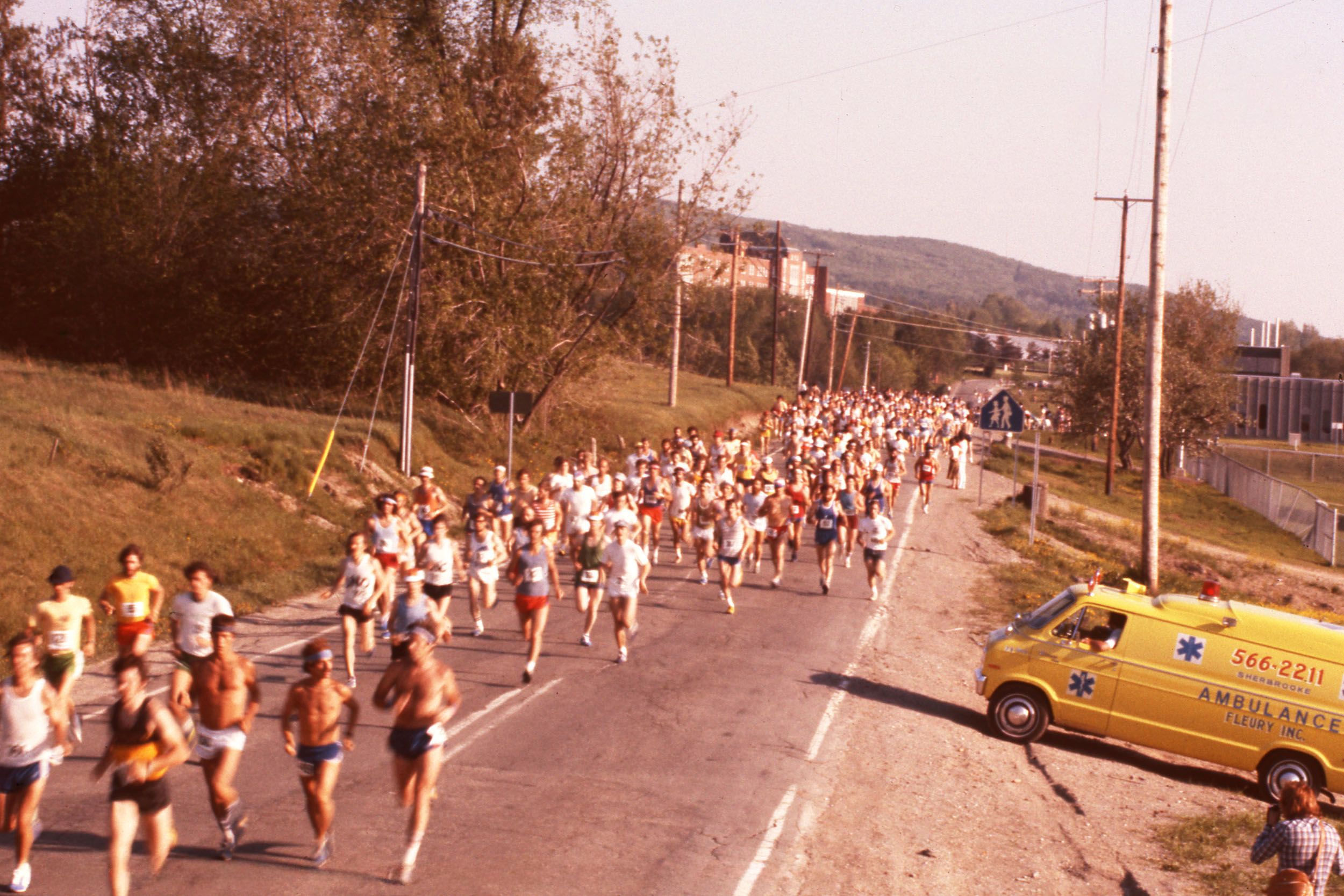 Et n’oublions pas qu’en 1975, dans le cadre du deuxième Festival des Cantons, on organise un semi-marathon et un «Tour du monde au p’tit trot» qui rassemble des centaines de participants. À Sherbrooke, même faire le tour du monde peut se faire… en courant local.