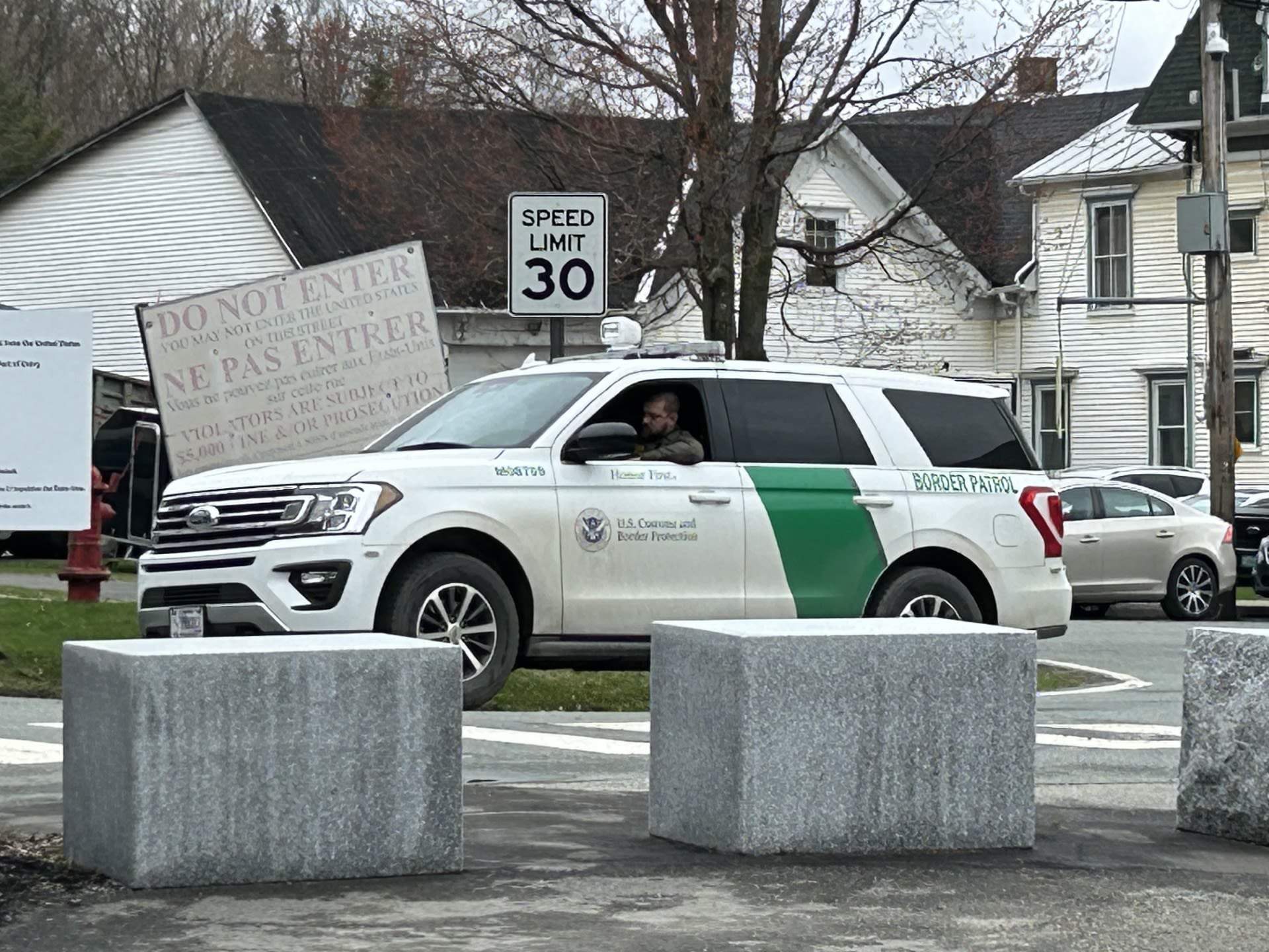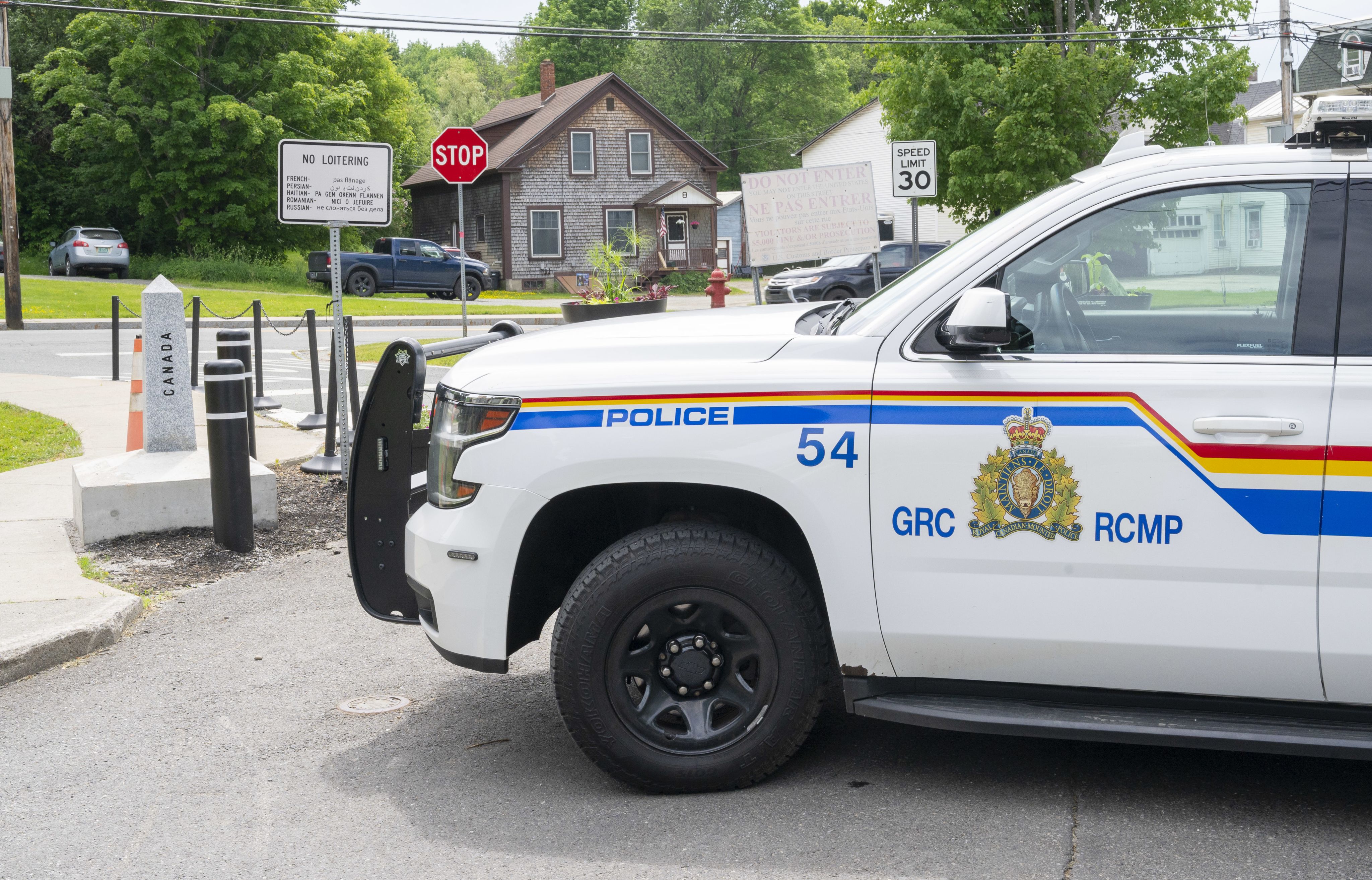 Au cours de nos visites le long de la frontière, nous avons croisé des patrouilles de la GRC à quelques reprises à Stanstead, la ville jumelle de Derby Line, au Vermont.