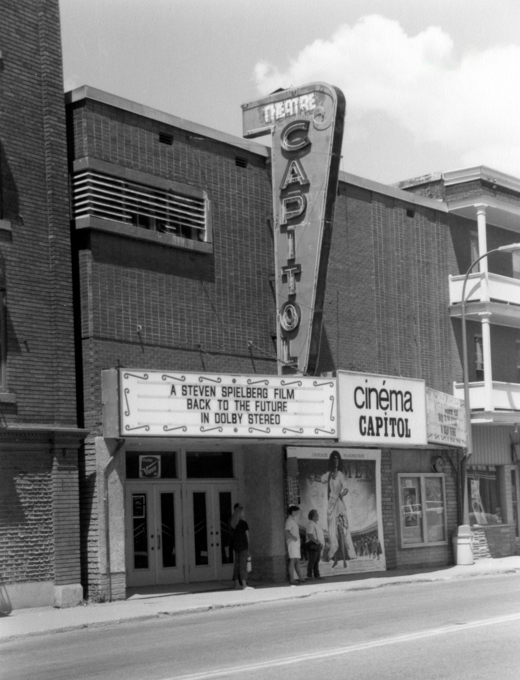 Extérieur du cinéma Capitol, en 1985. (Photo Collection du Musée d’histoire de Sherbrooke)