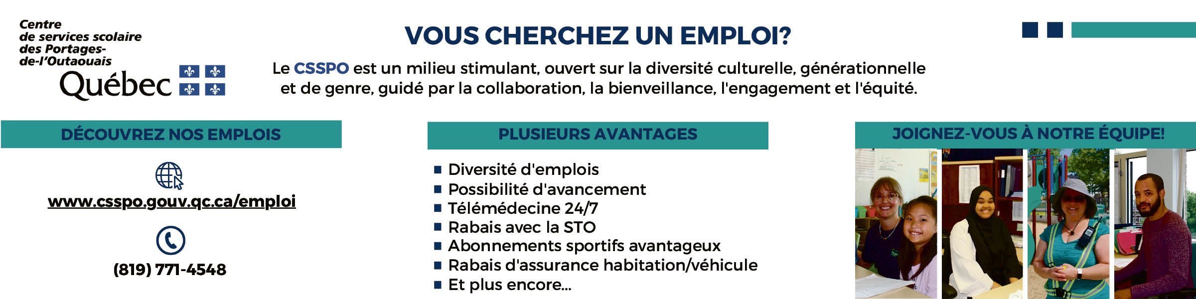 Le Centre de services scolaire des Draveurs (CSSD) souhaite féliciter tous les élèves de ses écoles secondaires ayant remporté un prix à la finale régionale de l’Outaouais de l’Expo-sciences Hydro-Québec qui s’est déroulée du 8 au 10 mars dernier à Gatineau.