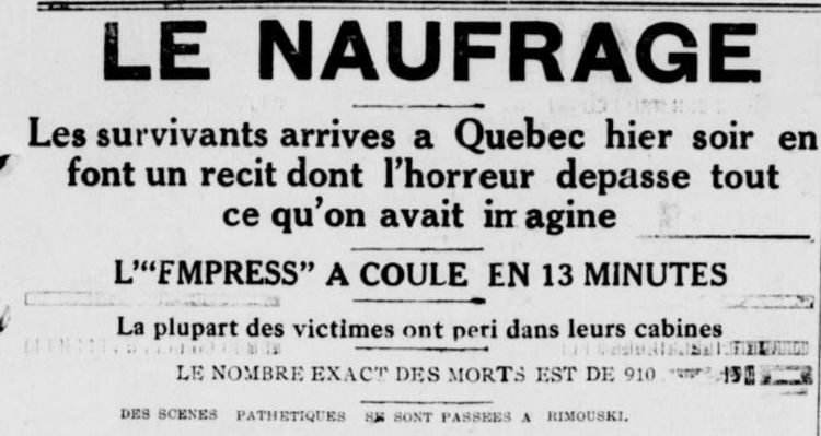 Les médias locaux rapportent évidemment le naufrage de l’Empress of Ireland. (Photo La Tribune, 30 mai 1914)