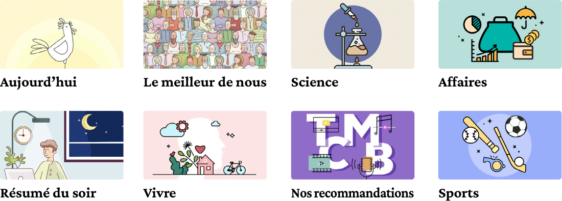 - Des thématiques pour tous les goûts et selon vos intérêts. Les actualités du jour avec les infolettres Aujourd'hui et Résumé du soir en passant par du contenu ciblé dans les infolettres Science et Sports.