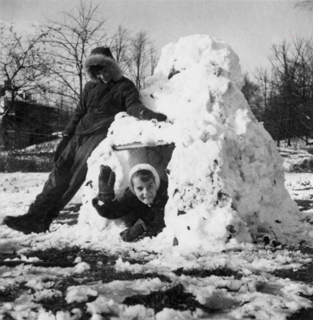 Les enfants ont toujours trouvé le moyen de jouer dans la neige, même quand il y en avait bien peu. (Photo Fonds Paul Gagné, Mhist)