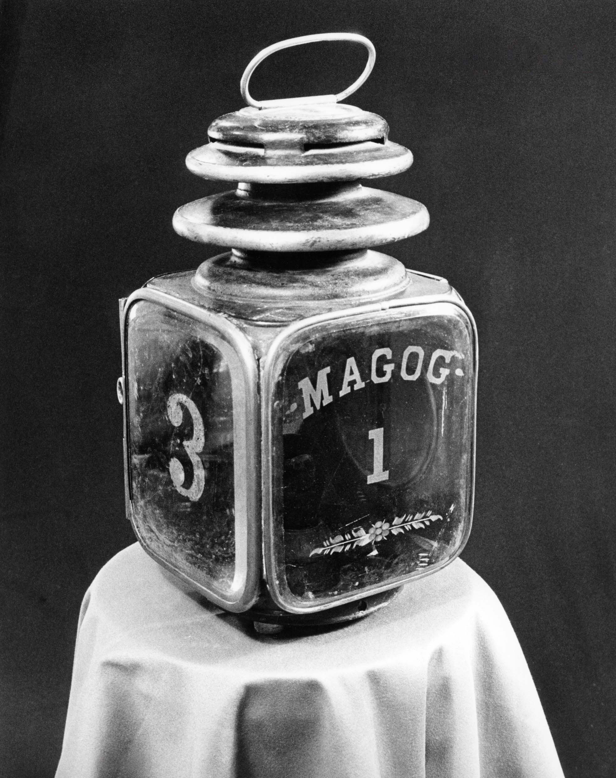 La lampe a servi pour la pompe à vapeur Merryweather acquise par la Magog Steam Fire Company en 1873. (Photo Collection Jacques Darche, Musée d’histoire de Sherbrooke)