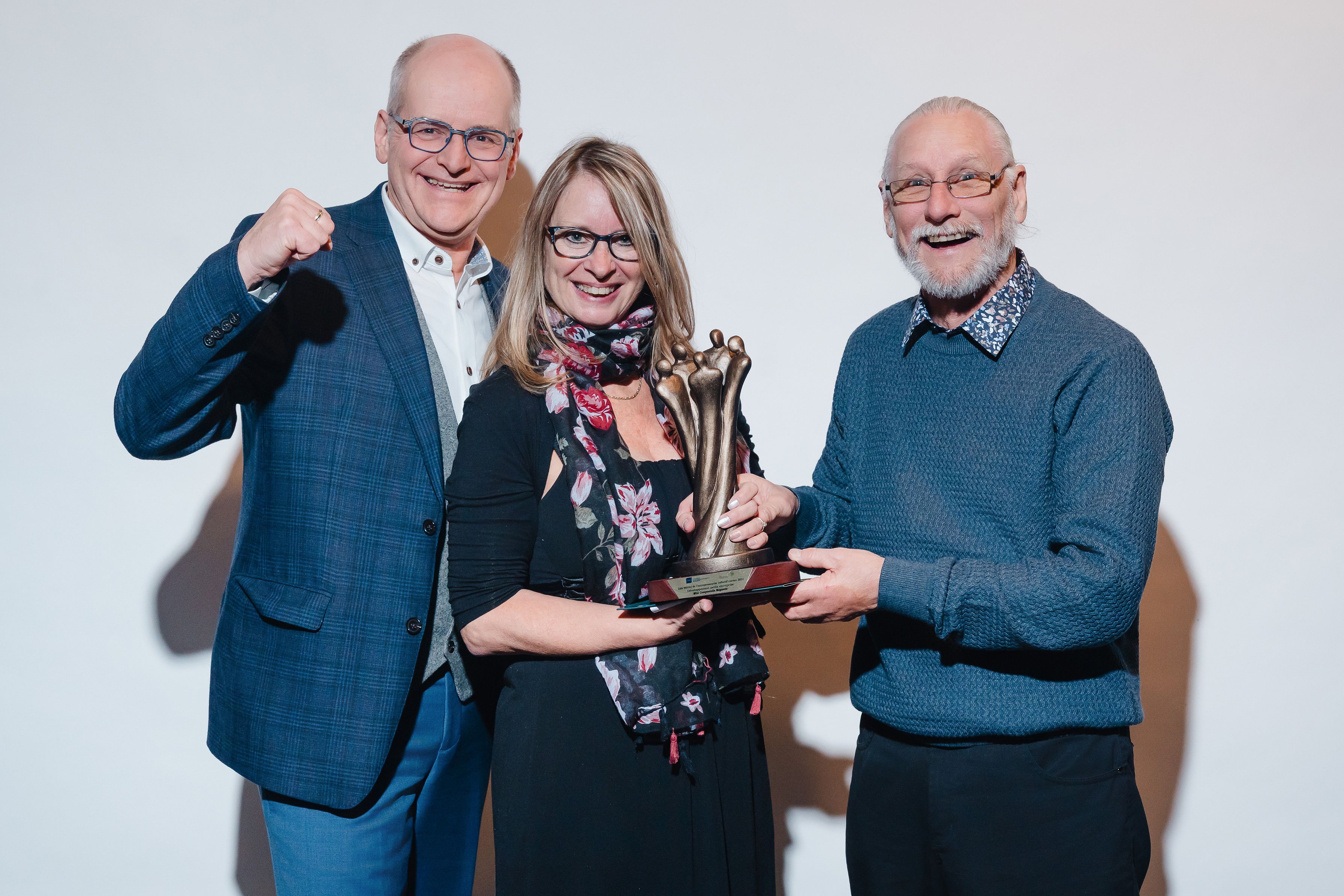 François Fouquet, Coopérative funéraire de l’Estrie, Chantal Ladouceur, directrice générale, Daniel Montpetit, fondateur et membre CA. Photo : Jean-Michel Naud