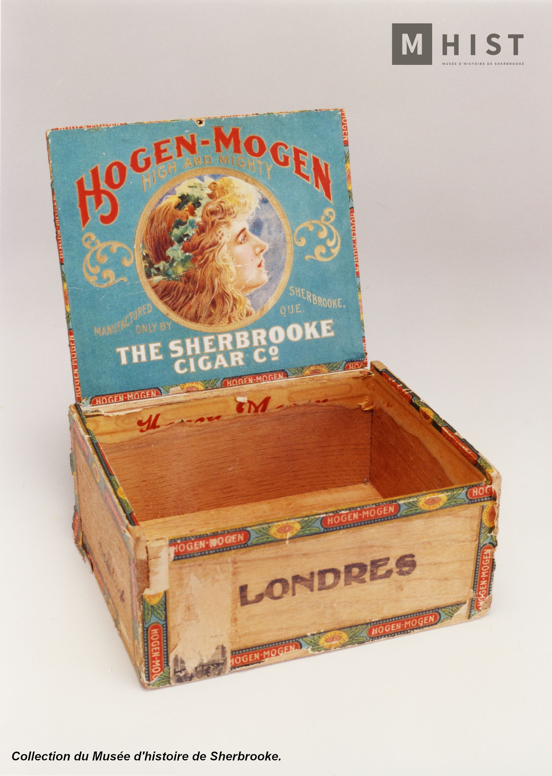 Une boîte des cigares Hogen-Mogen, produits par la Sherbrooke Cigar Co., est très prisée à l’époque. (Photo, Collection Musée d’histoire de Sherbrooke)