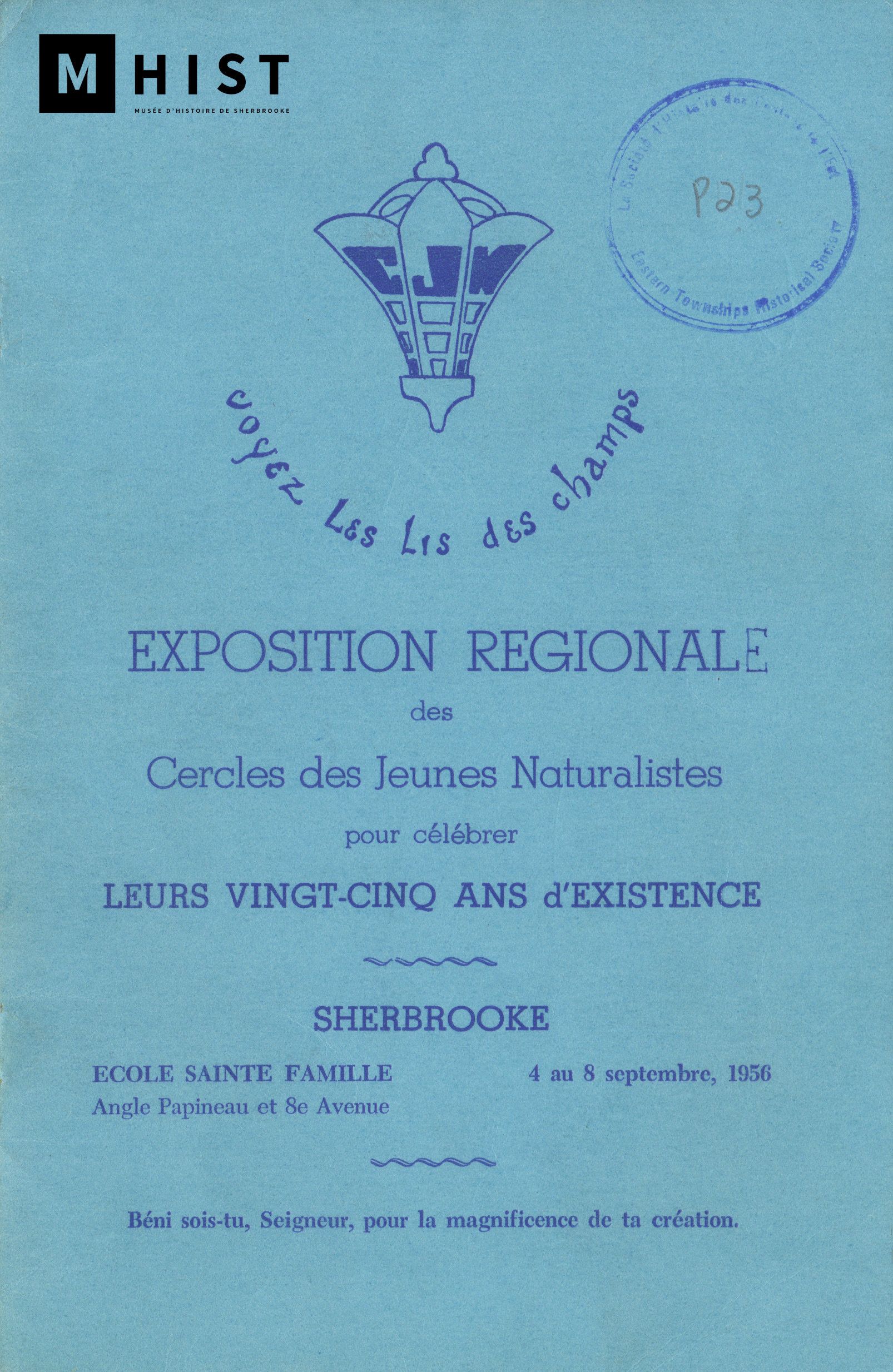 «Vous n’avez jamais fait partie d’un CJN? Alors je ne suis pas sûre que vous connaissiez l’enthousiasme qui naît chez les jeunes qui découvrent comment est fait un brin d’herbe, un papillon, un caillou», peut-on lire dans cette brochure parue dans le cadre de l’Exposition régionale des Cercles des jeunes naturalistes en 1956. (Photo Fonds Jean Mercier, Musée d’histoire de Sherbrooke)