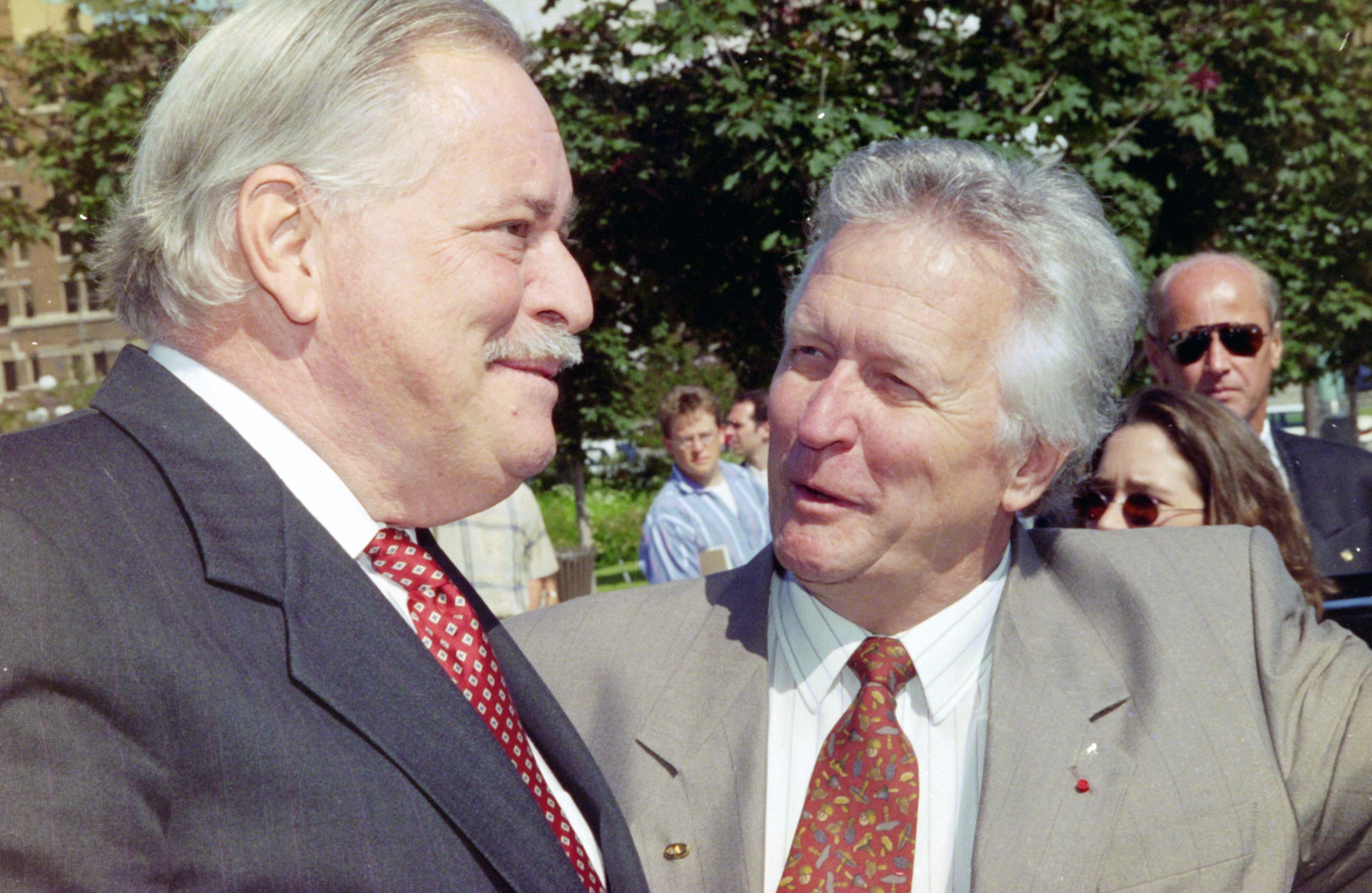 Le premier ministre du Québec, Jacques Parizeau, entretenait une relation harmonieuse avec le maire Jean-Paul L'Allier. (Archives Le Soleil/Clément Thibeault)